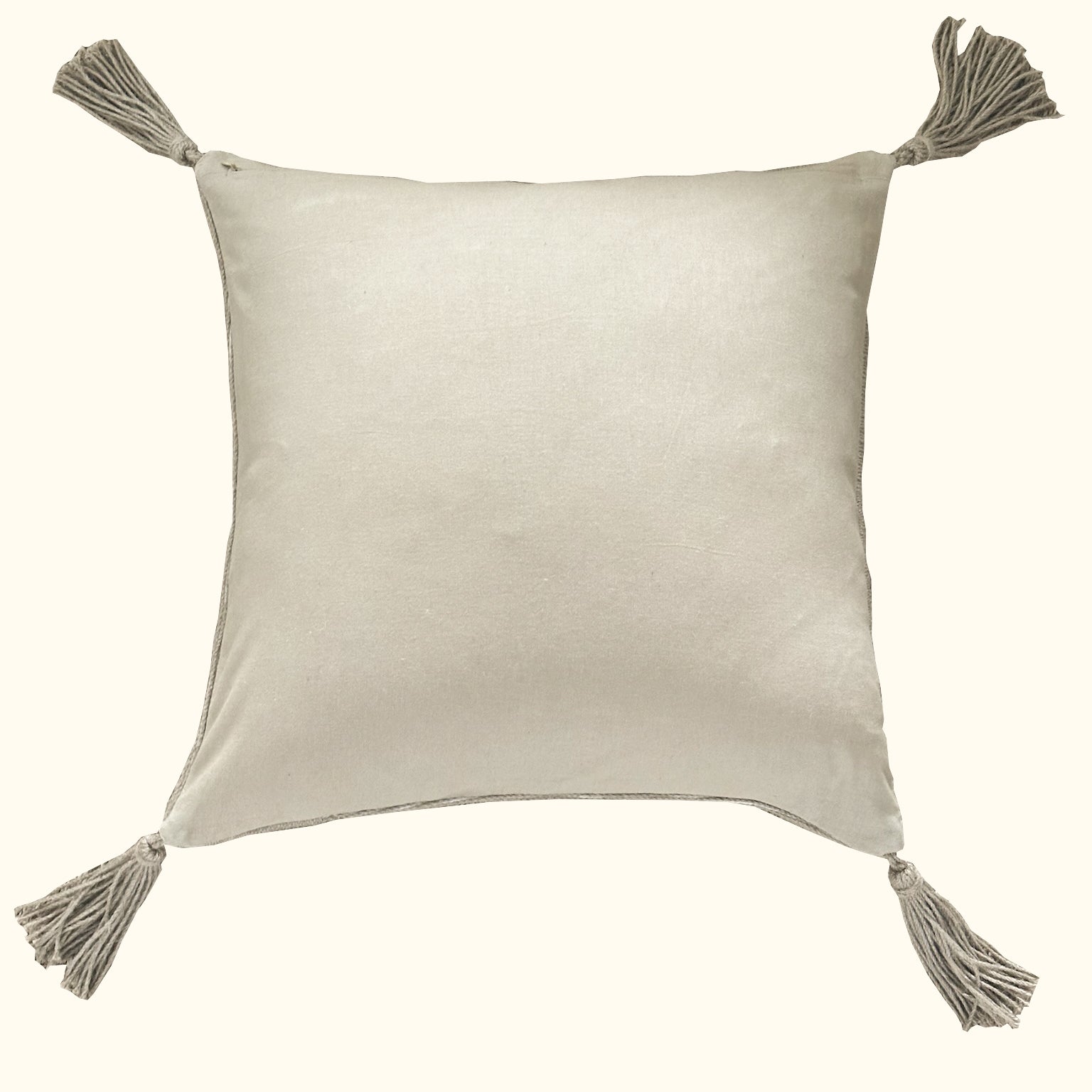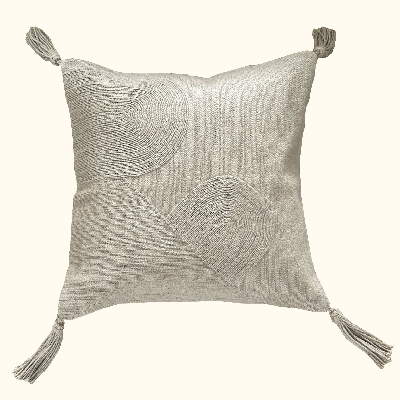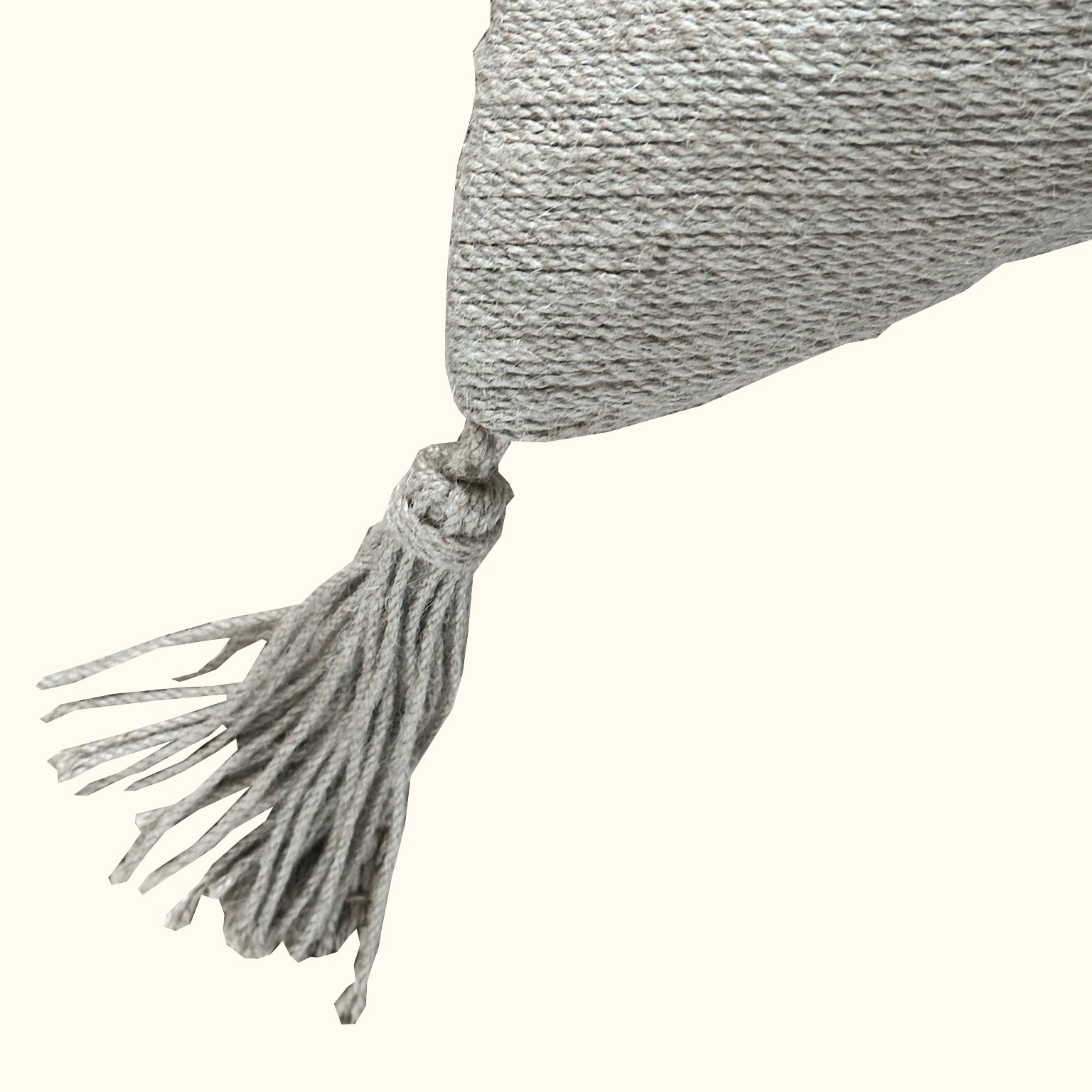 Natural jute is used in playful new ways to create surface interest and texture. Embellished with exaggerated tassels to bring a day at the beach indoors.