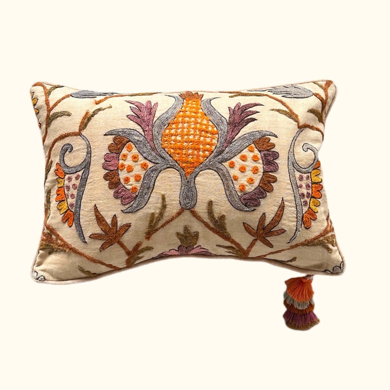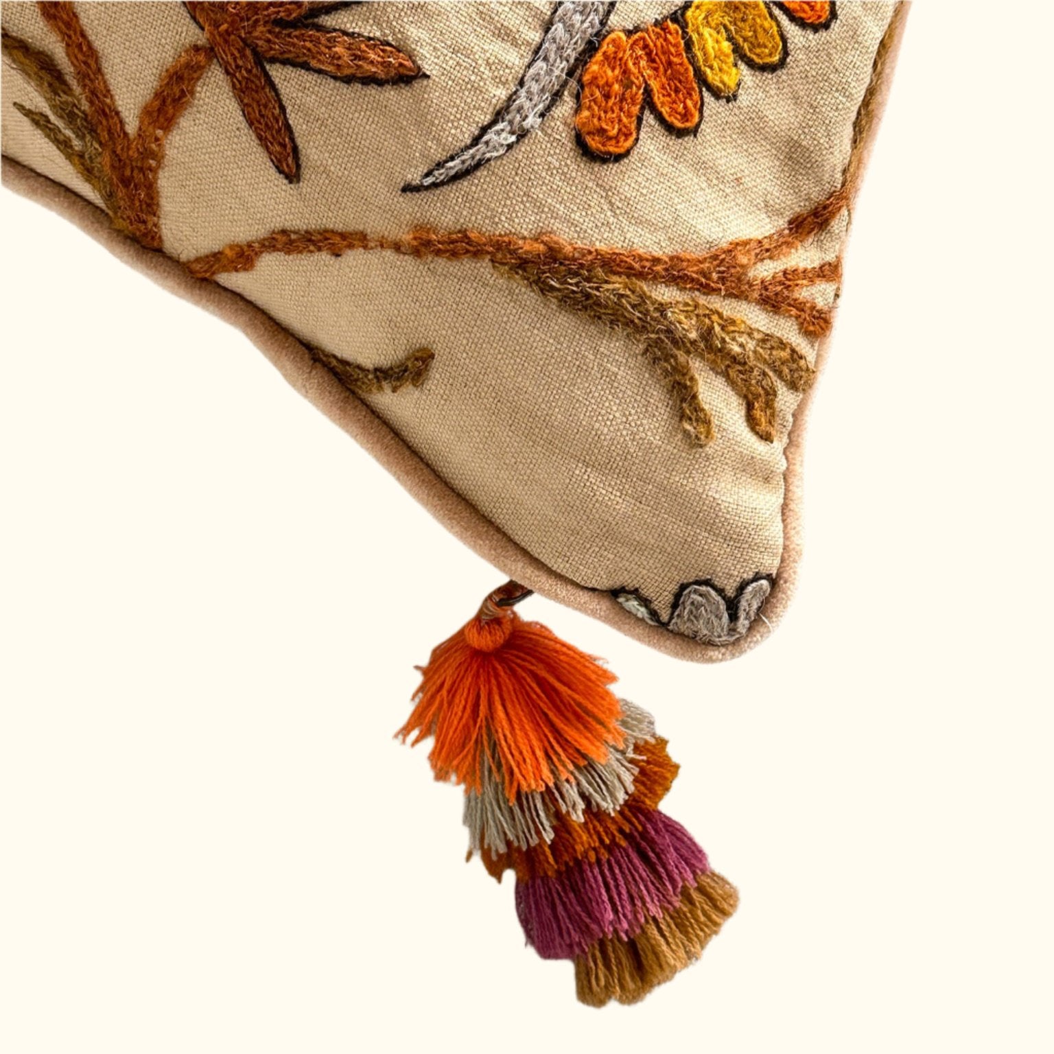 - All pillows are carefully constructed with the finest natural materials. As the fronts are vintage and antique textiles, some imperfections may be present. Great care and attention has been taken to ensure that significant tears or stains have been addressed or avoided. The vintage textiles have been lined, and each pillow is sewn with overlocked inside seams with generous seam allowances and finished with hidden zippers. Back fabrics are either natural linen or cotton velvet.