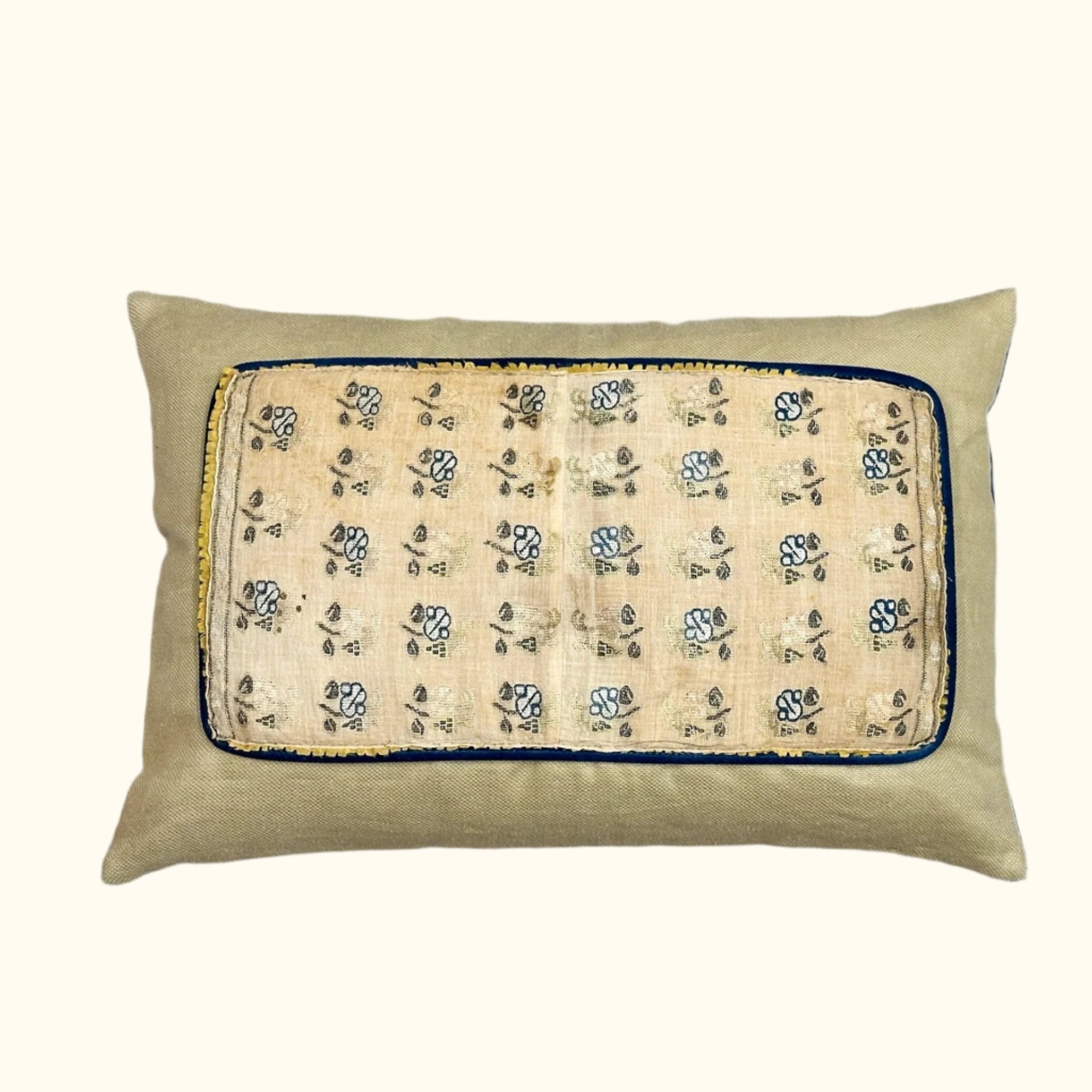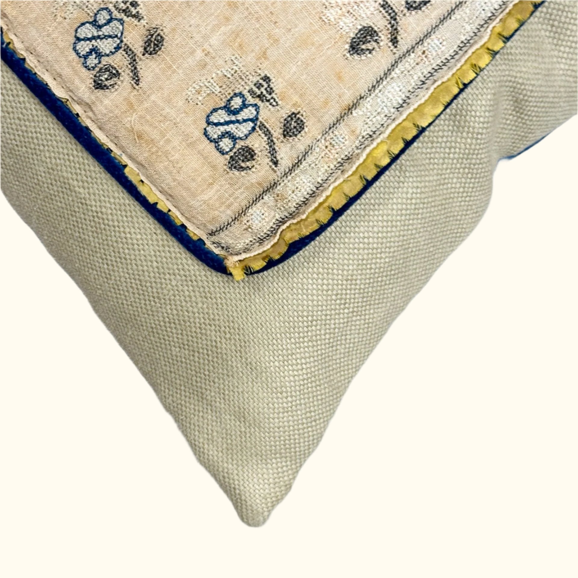 - All pillows are carefully constructed with the finest natural materials. As the fronts are vintage and antique textiles, some imperfections may be present. Great care and attention has been taken to ensure that significant tears or stains have been addressed or avoided. The vintage textiles have been lined, and each pillow is sewn with overlocked inside seams with generous seam allowances and finished with hidden zippers. Back fabrics are either natural linen or cotton velvet.