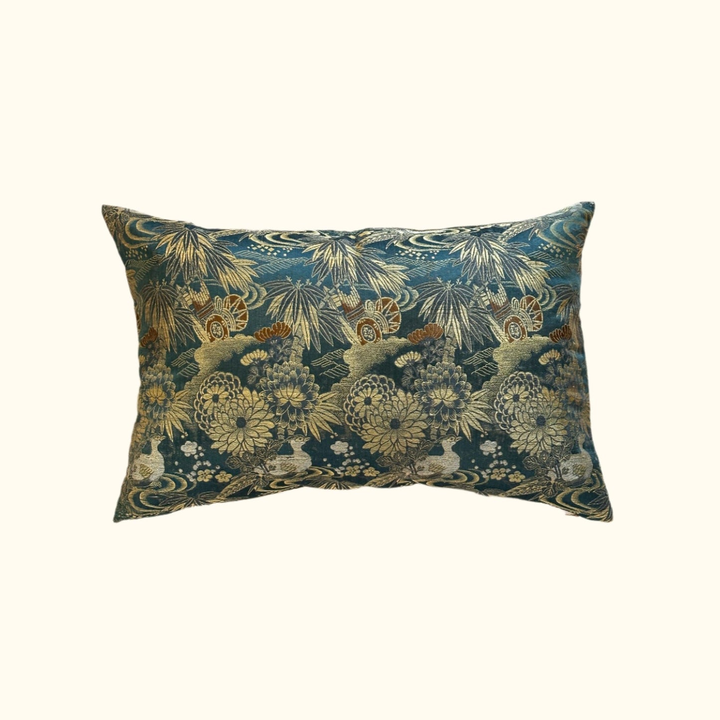 Antique Silk Brocade Pillow - 16x24 - Japan - 2571b