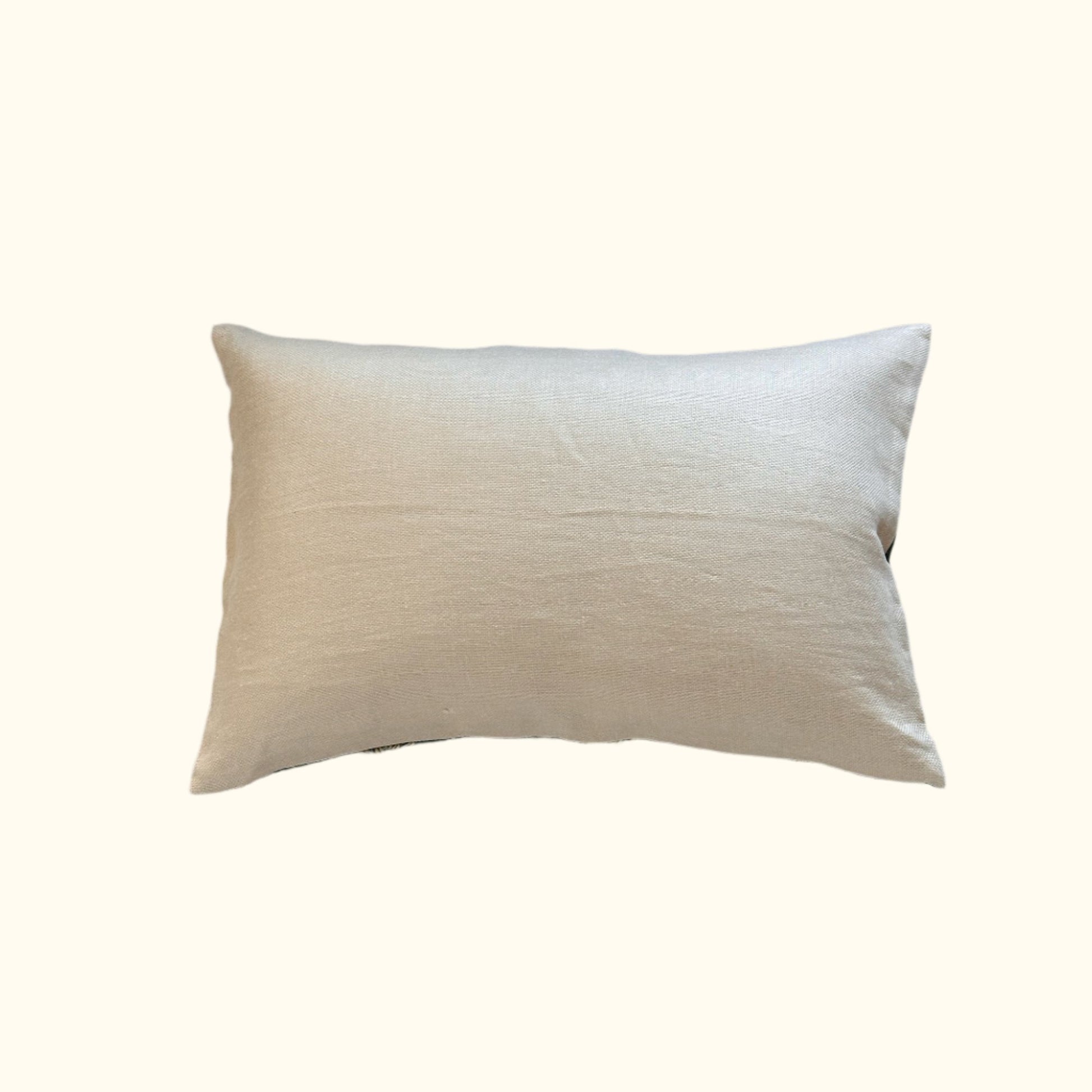 - All pillows are carefully constructed with the finest natural materials. As the fronts are vintage and antique textiles, some imperfections may be present. Great care and attention has been taken to ensure that significant tears or stains have been addressed or avoided. The vintage textiles have been lined, and each pillow is sewn with overlocked inside seams with generous seam allowances and finished with hidden zippers. Back fabrics are either natural linen or cotton velvet.