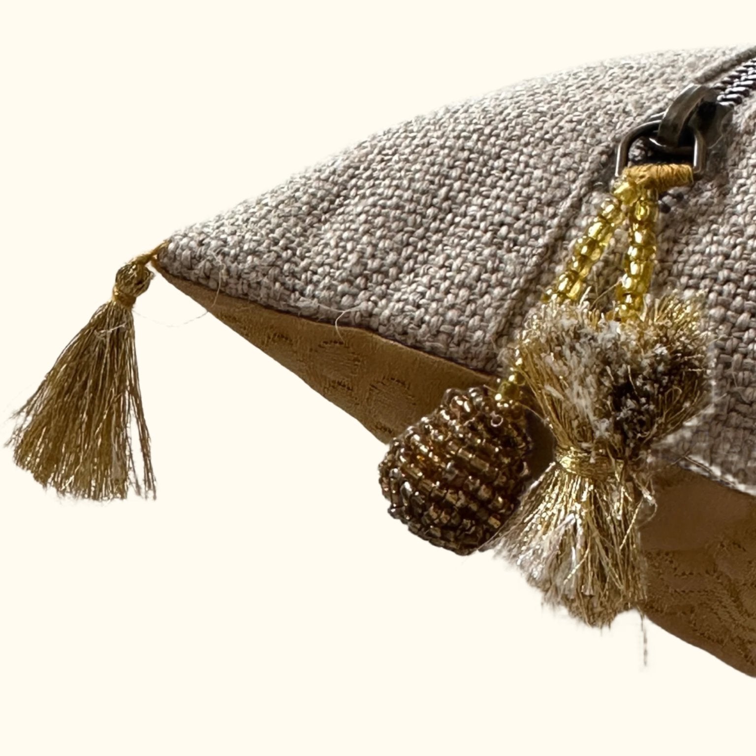 - All pillows are carefully constructed with the finest natural materials. As the fronts are vintage and antique textiles, some imperfections may be present. Great care and attention has been taken to ensure that significant tears or stains have been addressed or avoided. The vintage textiles have been lined, and each pillow is sewn with overlocked inside seams with generous seam allowances and finished with hidden zippers. Back fabrics are either natural linen or cotton velvet.