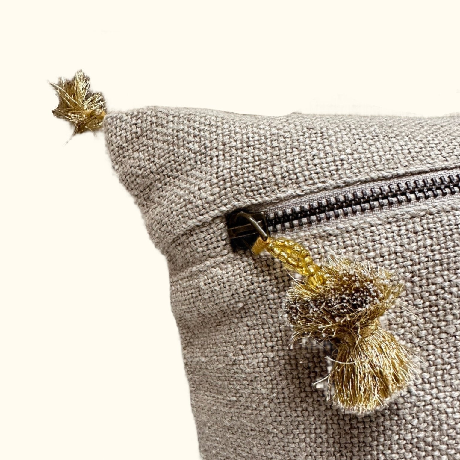 - All pillows are carefully constructed with the finest natural materials. As the fronts are vintage and antique textiles, some imperfections may be present. Great care and attention has been taken to ensure that significant tears or stains have been addressed or avoided. The vintage textiles have been lined, and each pillow is sewn with overlocked inside seams with generous seam allowances and finished with hidden zippers. Back fabrics are either natural linen or cotton velvet.