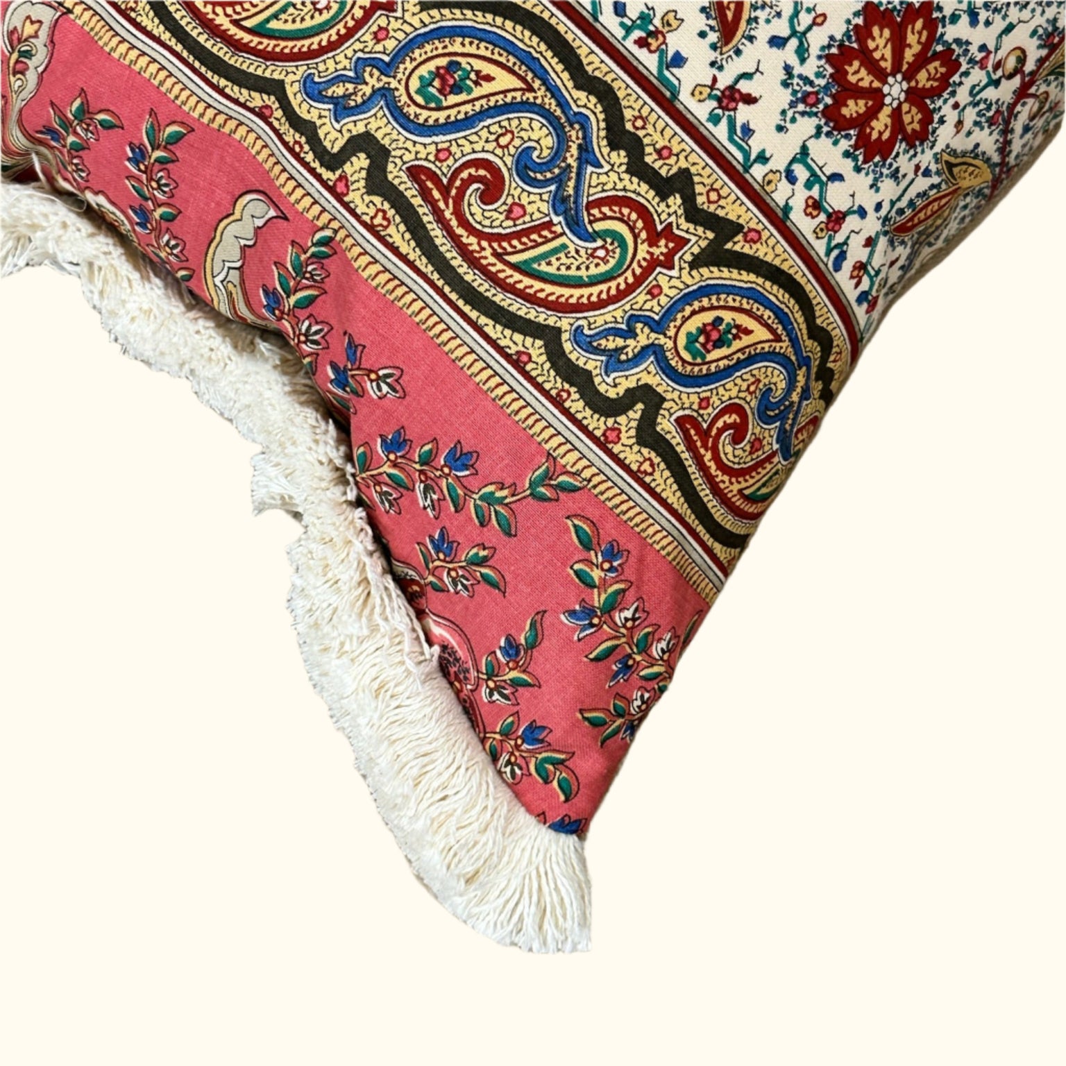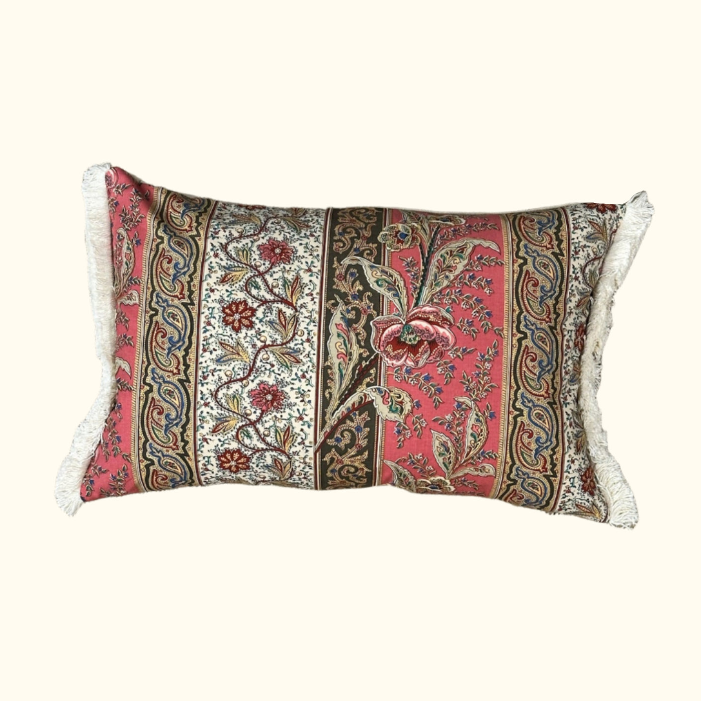 Vintage Cotton Indienne Floral Pillow - 13" x 20" - 415D