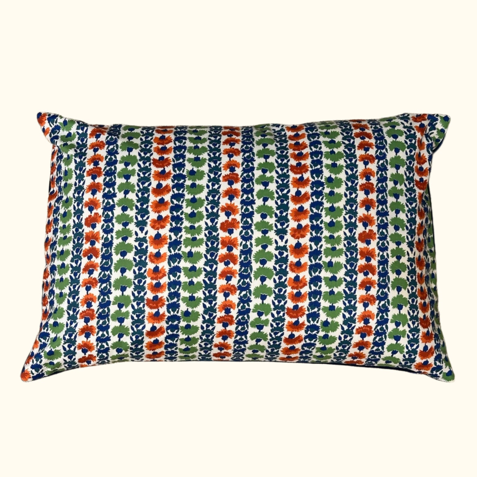 Cotton Striped Floral Pillow - 16" x 24" - USA - 414a