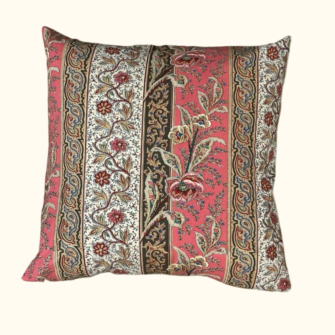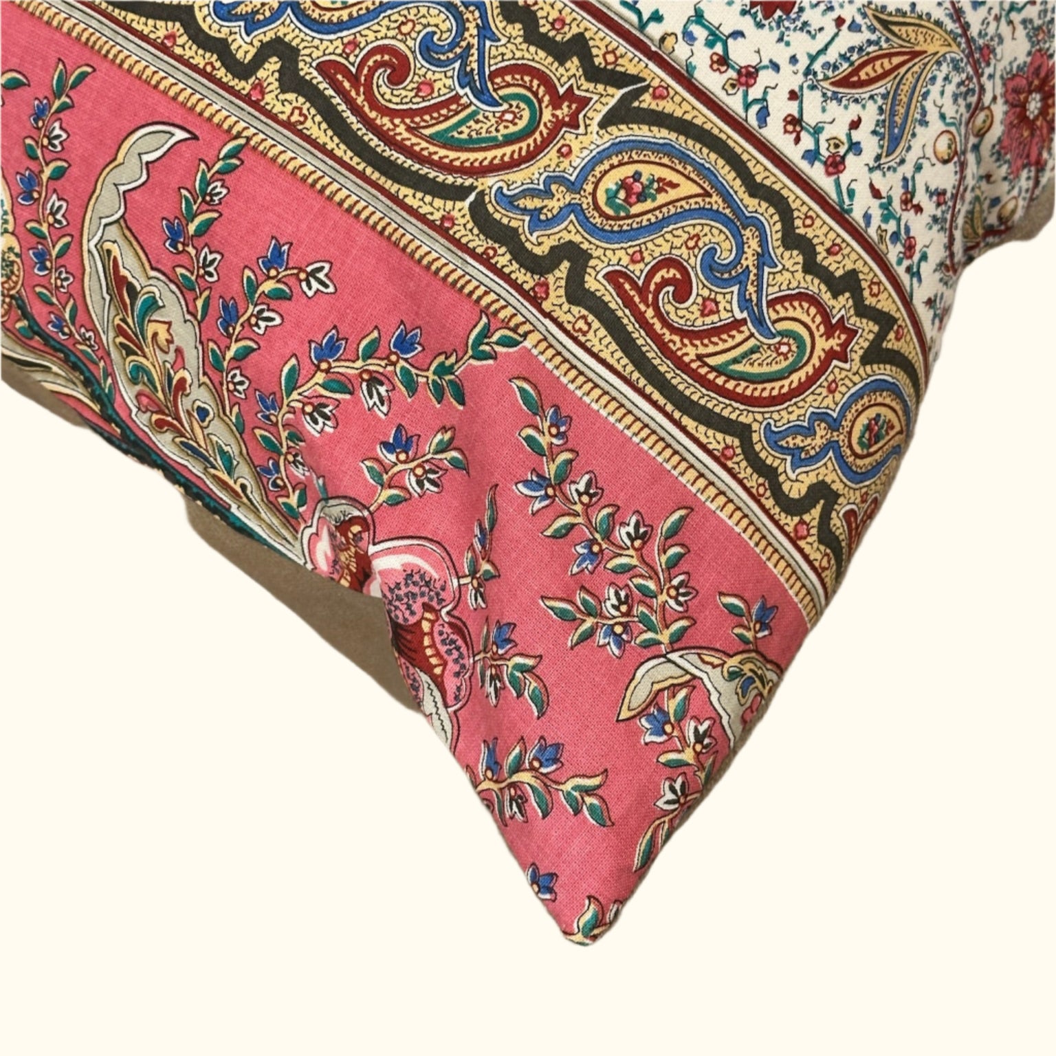 Vintage Cotton Indiene Floral Pillow - 22" x 22" - England - 415b
