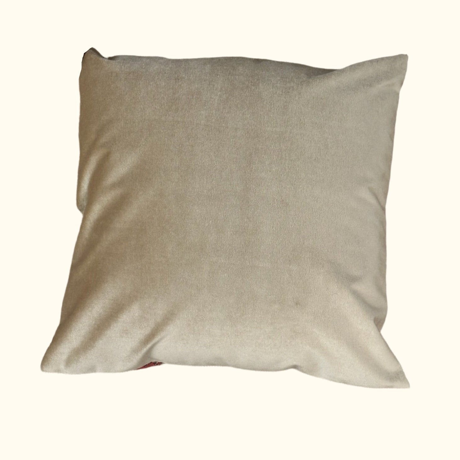 - All pillows are carefully constructed with the finest natural materials. As the fronts are vintage and antique textiles, some imperfections may be present. Great care and attention has been taken to ensure that significant tears or stains have been addressed or avoided. The vintage textiles have been lined, and each pillow is sewn with overlocked inside seams with generous seam allowances and finished with hidden zippers. Back fabrics are either natural linen or cotton velvet.