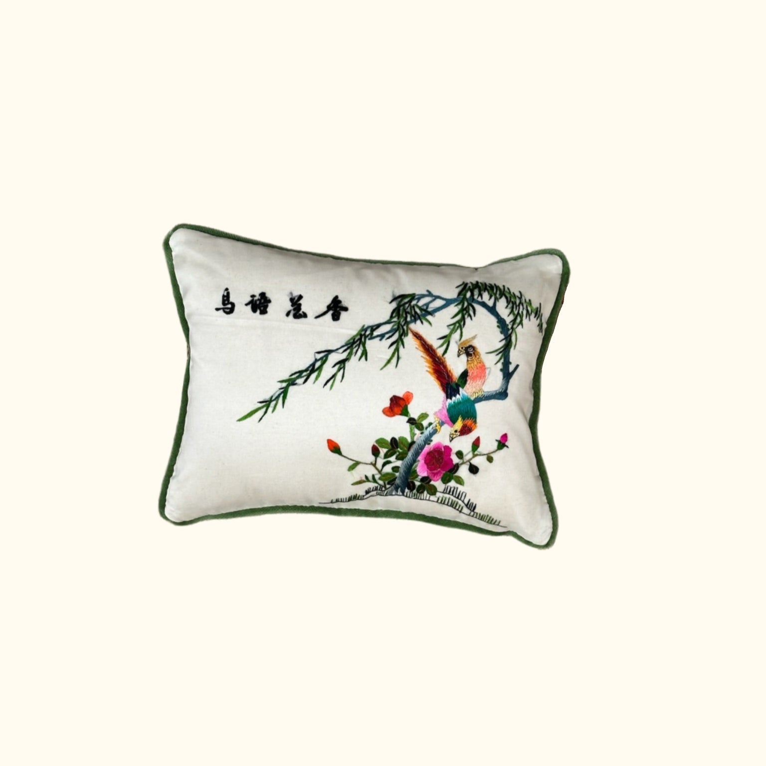 Vintage Silk on Silk Embroidered Pillow - 9" x 11" - China - 320c