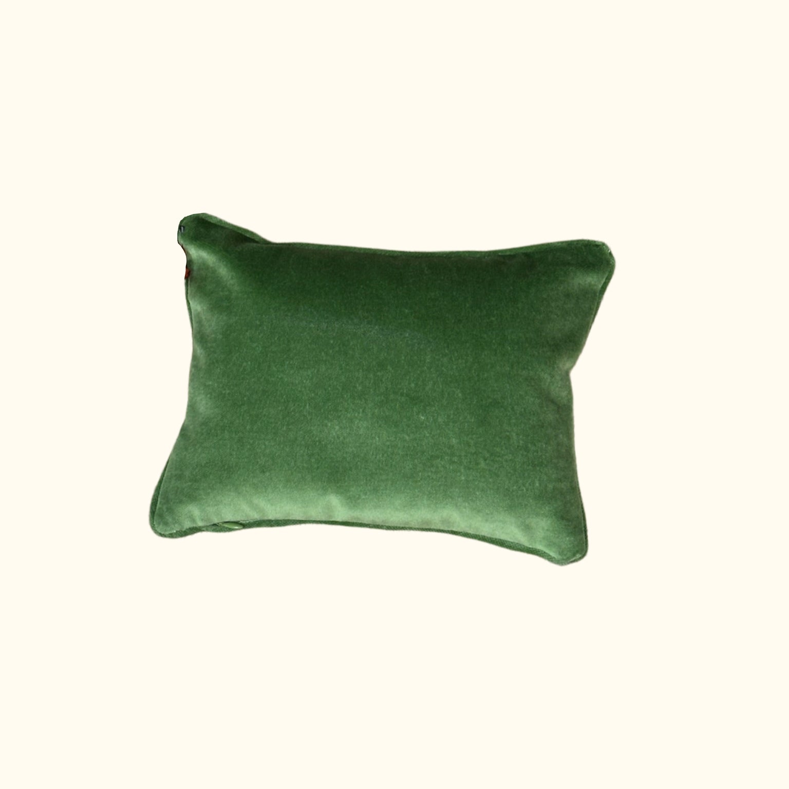 - All pillows are carefully constructed with the finest natural materials. As the fronts are vintage and antique textiles, some imperfections may be present. Great care and attention has been taken to ensure that significant tears or stains have been addressed or avoided. The vintage textiles have been lined, and each pillow is sewn with overlocked inside seams with generous seam allowances and finished with hidden zippers. Back fabrics are either natural linen or cotton velvet.