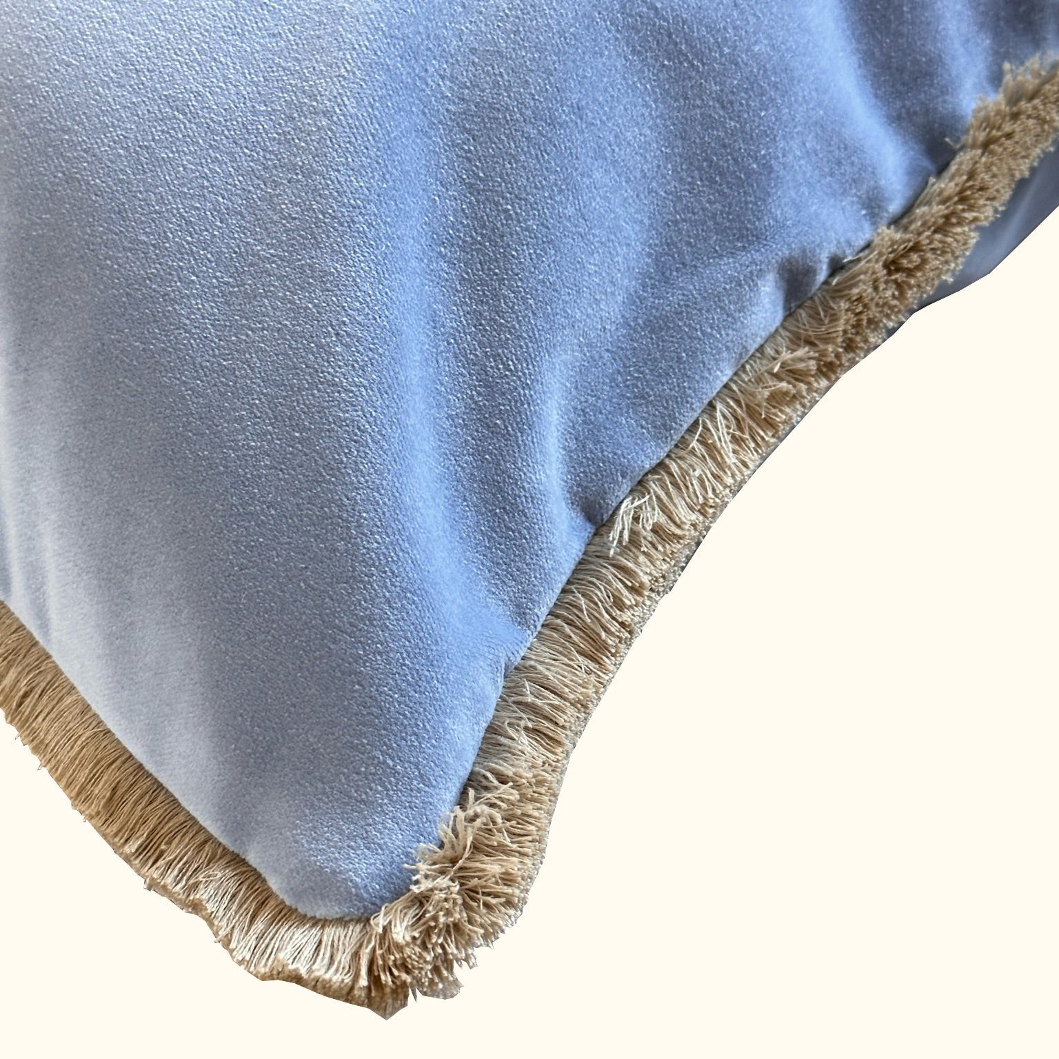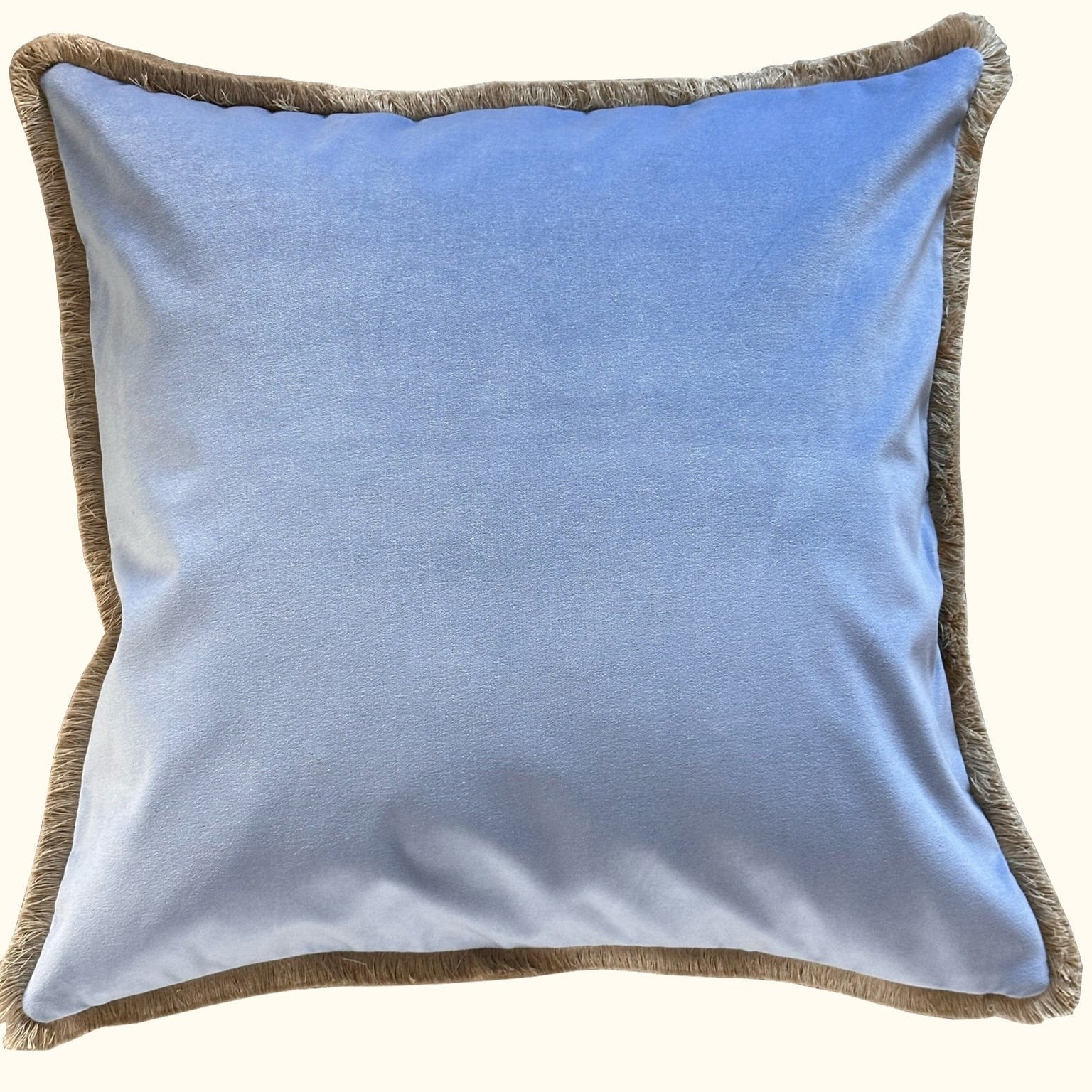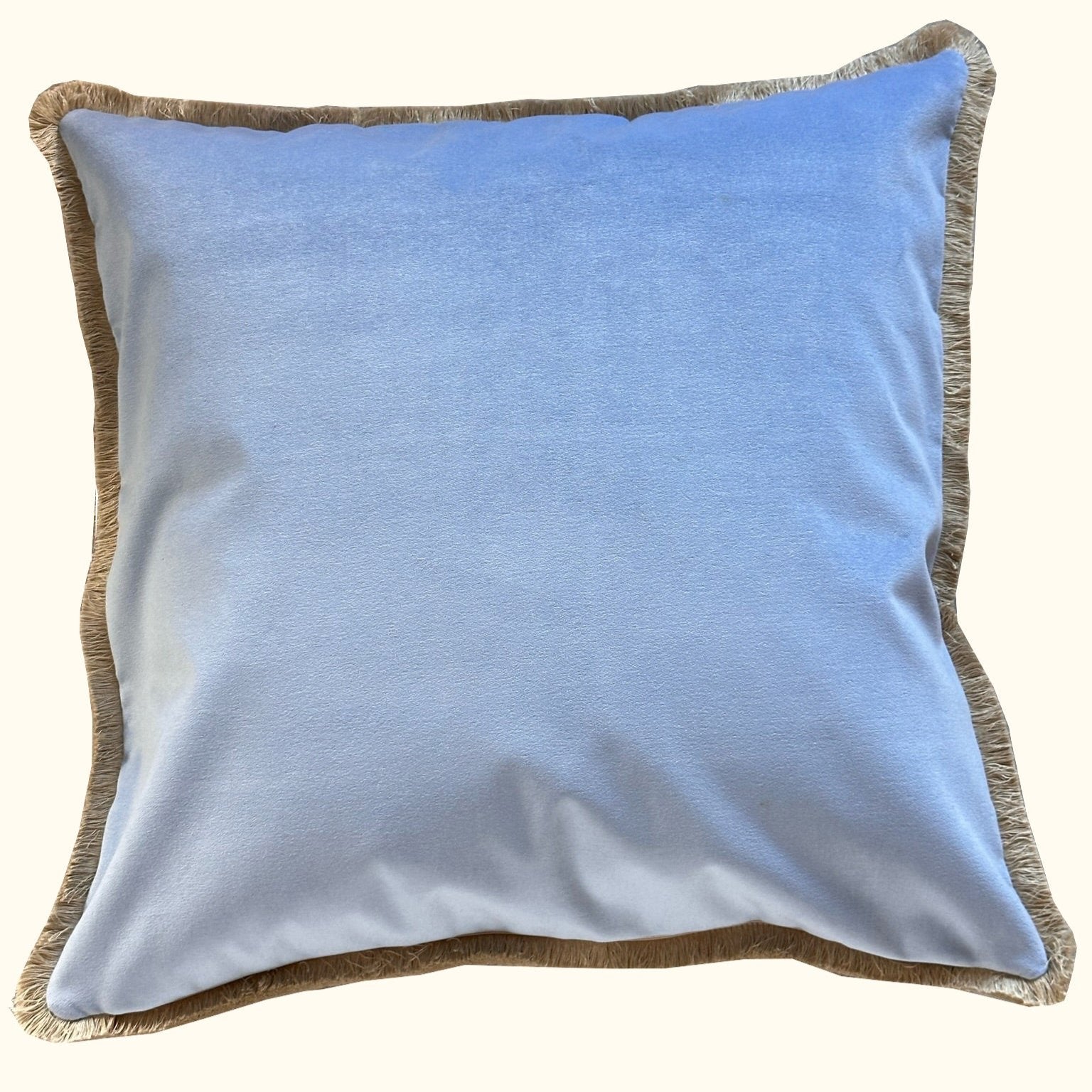 Baby Blue Cotton Velvet with Fringe Pillow - 24" x 24" - USA