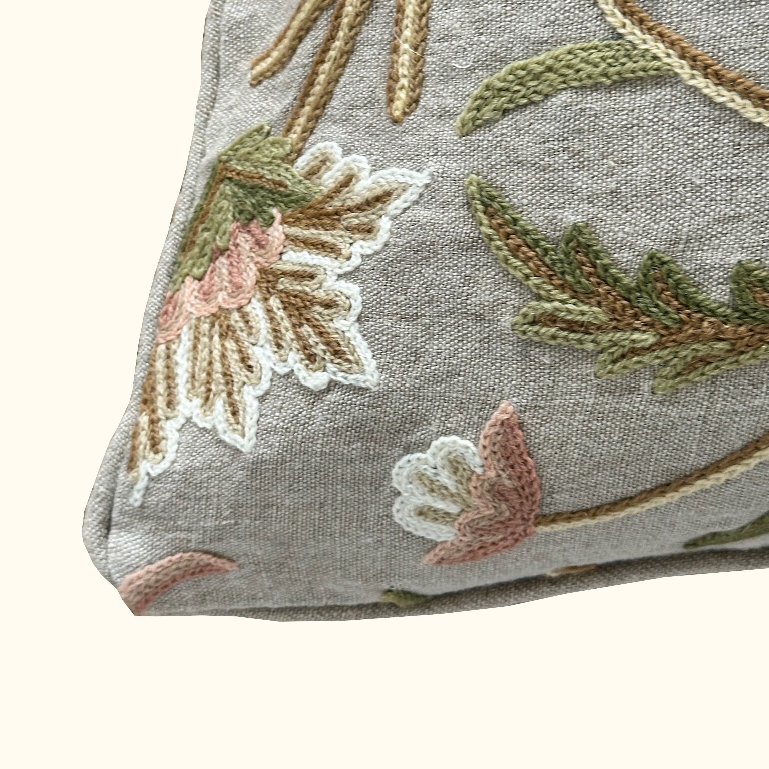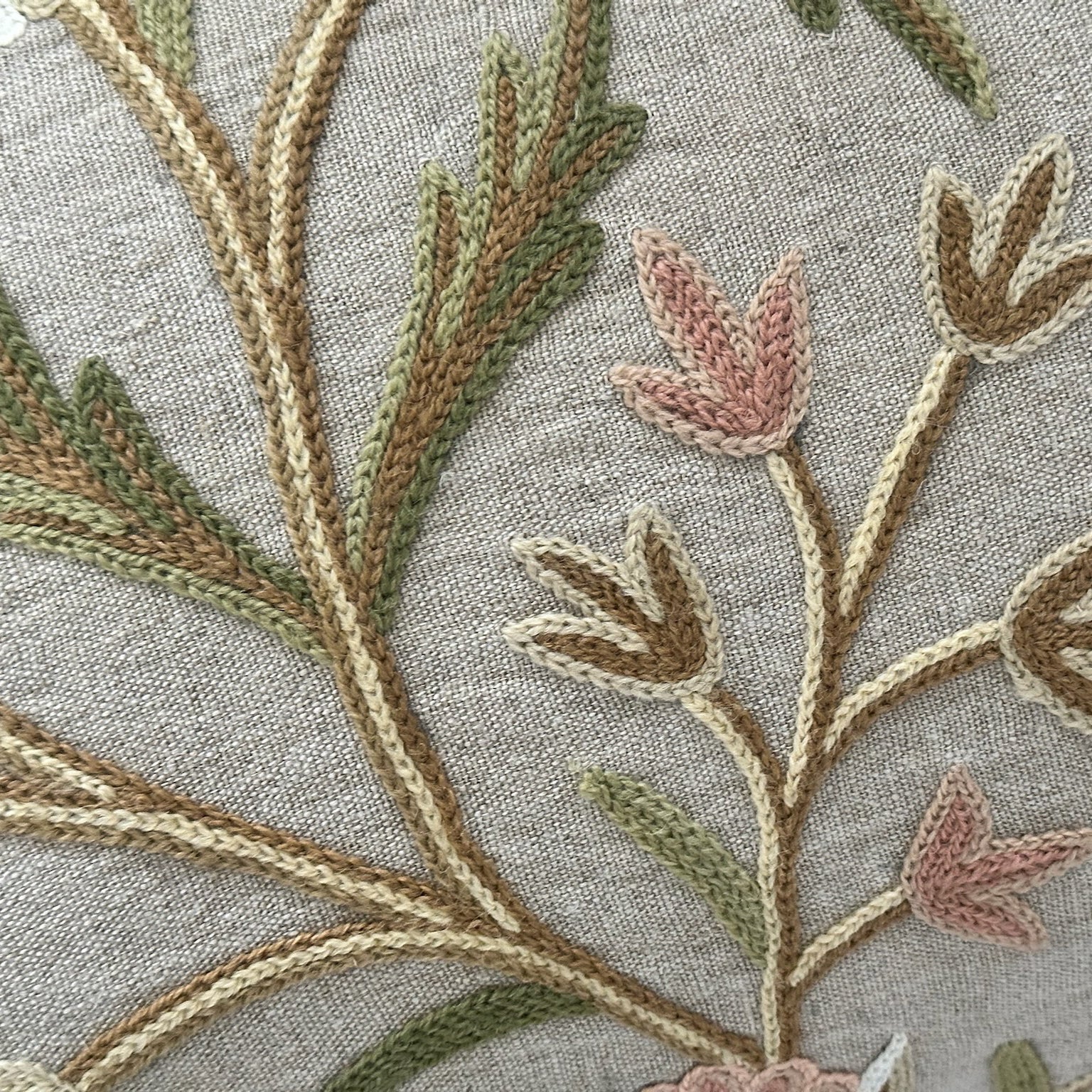 We are proud to revitalize this heritage technique "wool crewel work" which has a rich history, dating back centuries. It originated in Kashmir, a remote region known for its skilled artisans and intricate needle work.