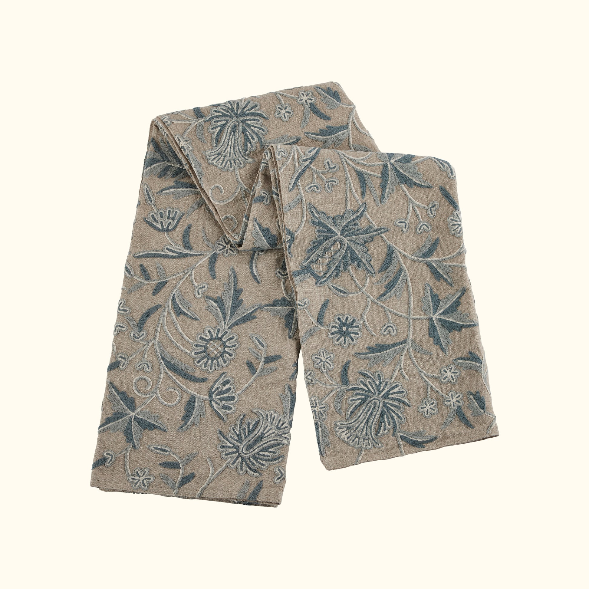 We are proud to revitalize this heritage technique "wool crewel work" which has a rich history, dating back centuries. It originated in Kashmir, a remote region known for its skilled artisans and intricate needle work.