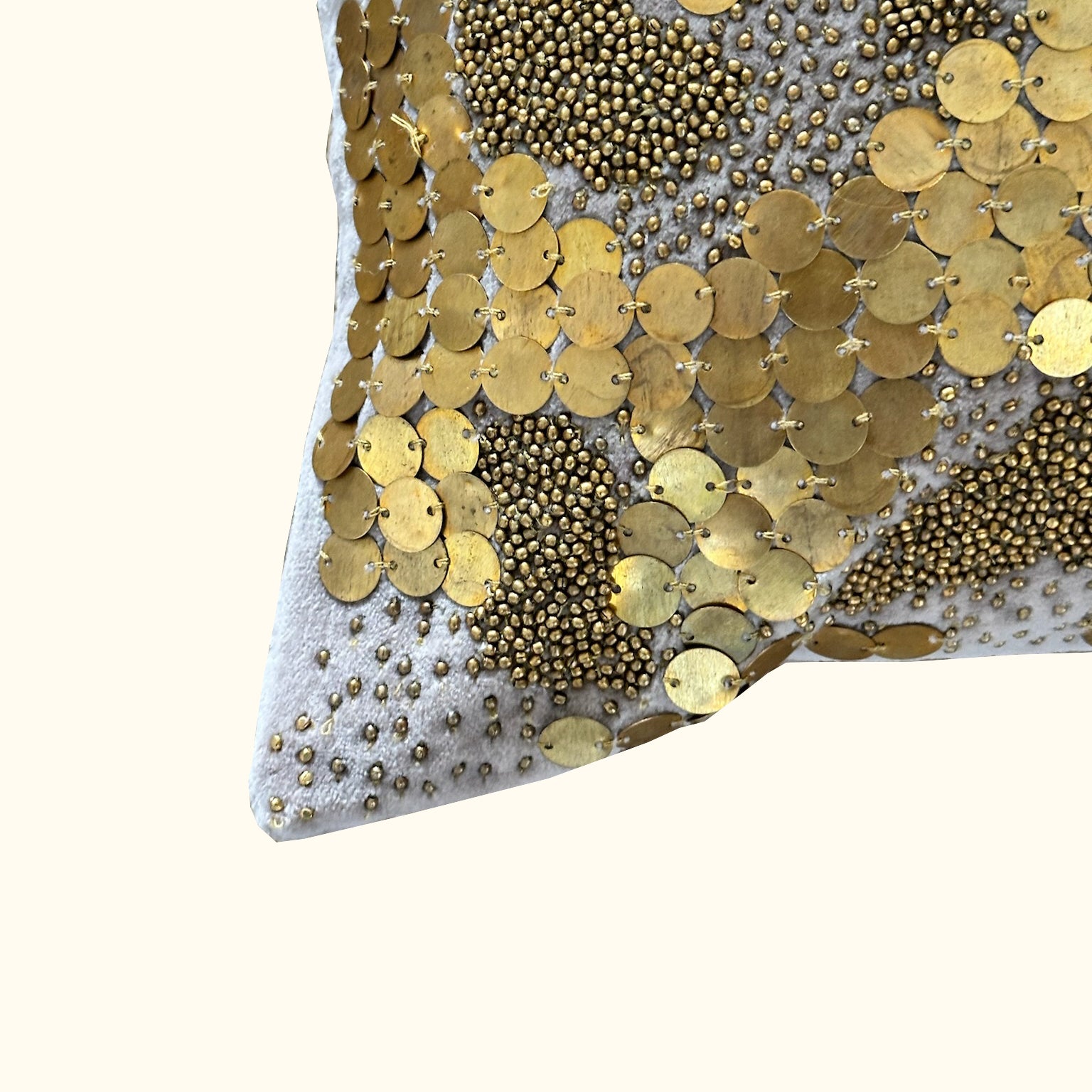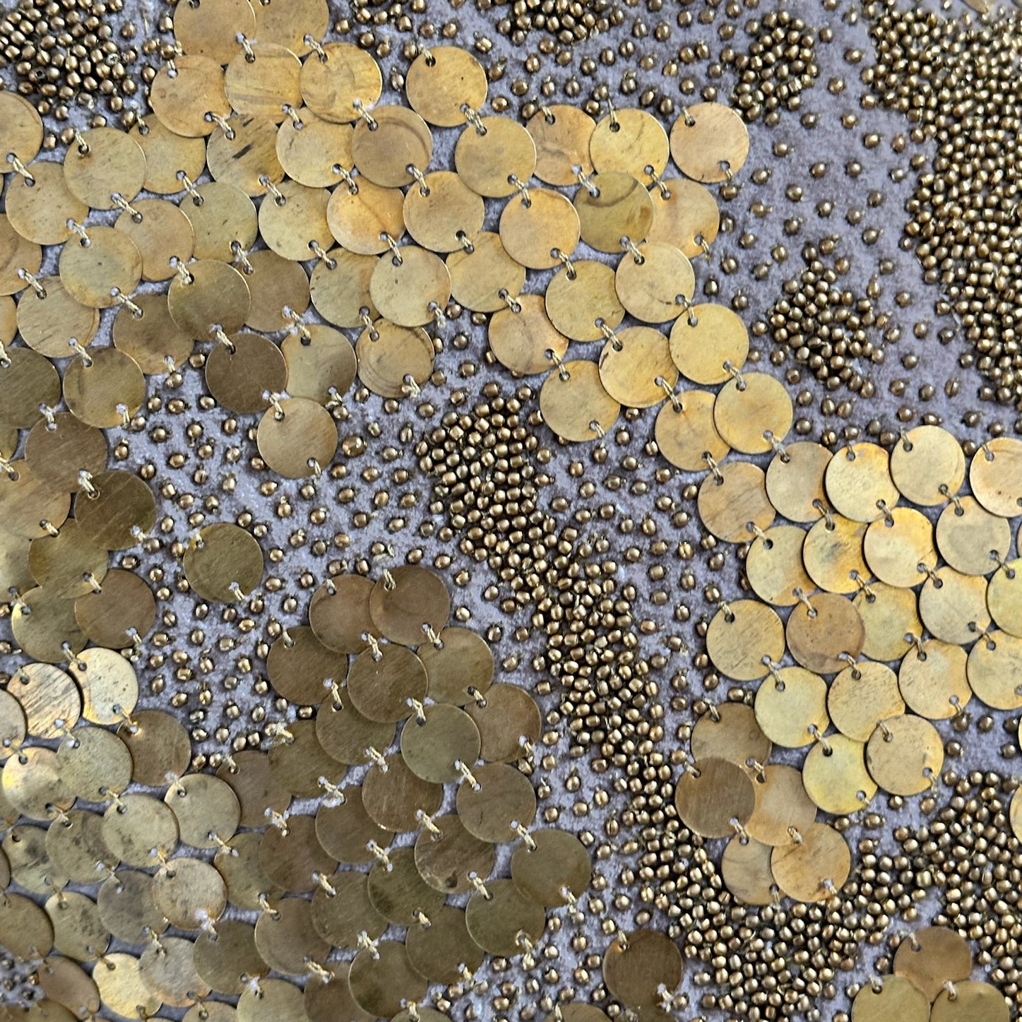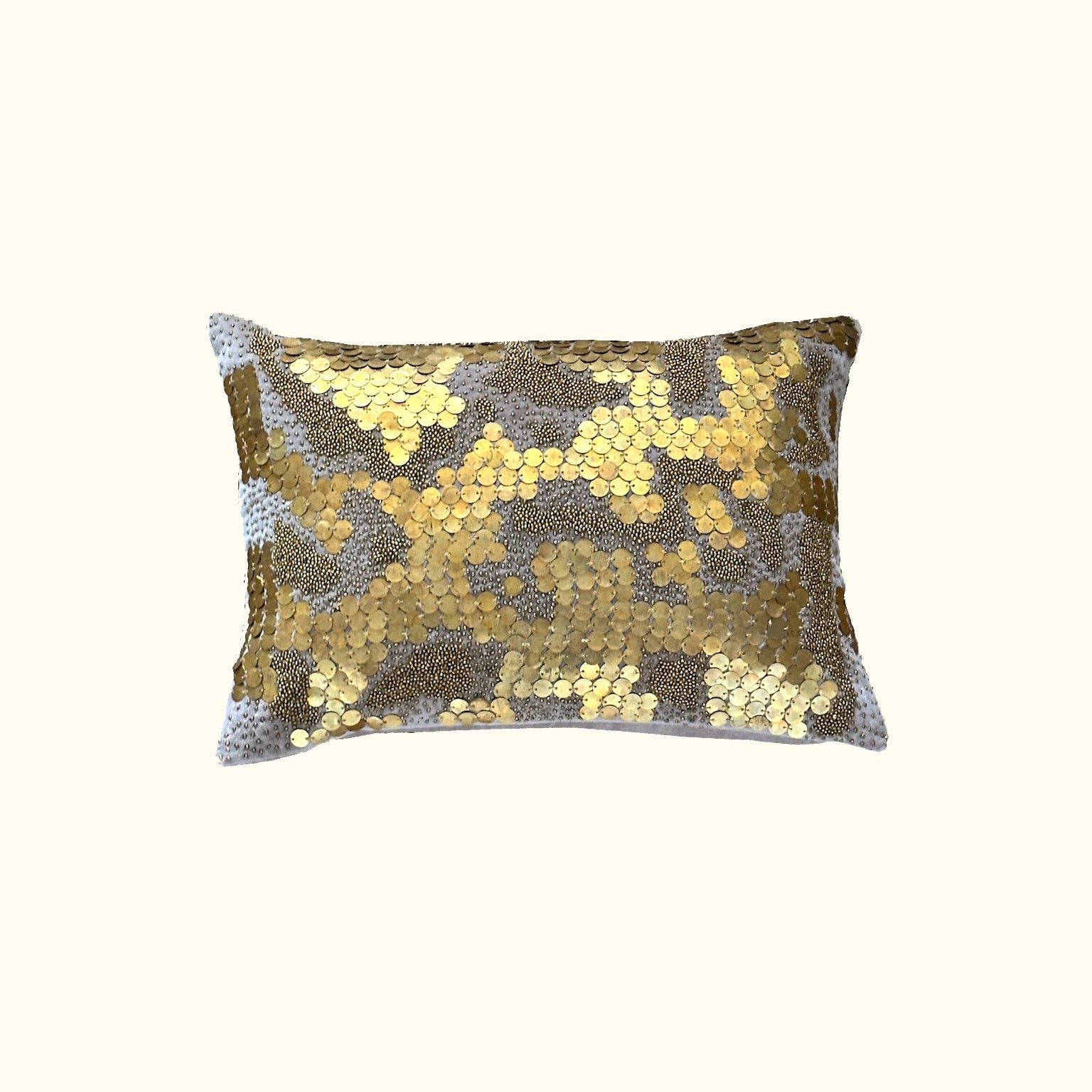 For our Heavy Metal collection, brass charms, rings and coins, bronze zippers and mirror fragments are juxtaposed against natural linen and jute to create sophisticated pillows with a rebel heart.