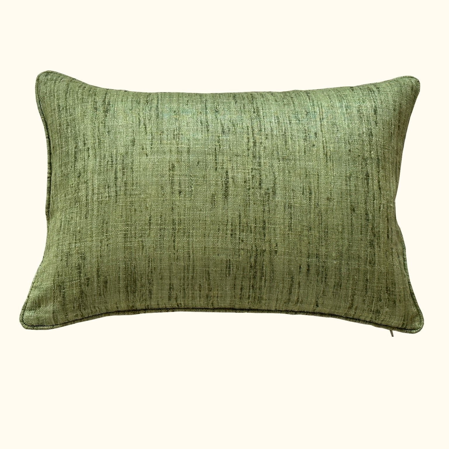 Green Wild Silk with Piping Pillow - 16" x 24" - India