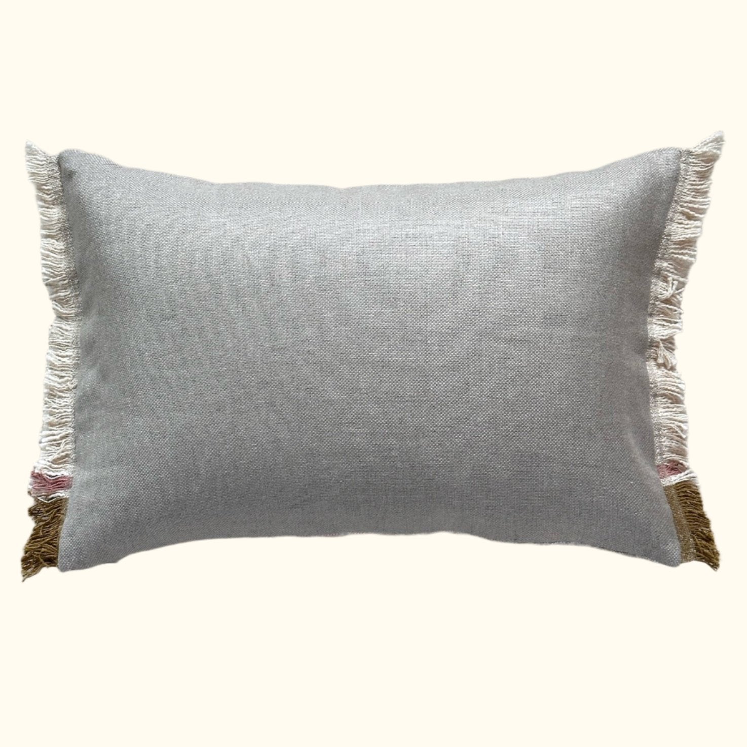 - All pillows are carefully constructed with the finest natural materials. As the fronts are vintage and antique textiles, some imperfections may be present. Great care and attention has been taken to ensure that significant tears or stains have been addressed or avoided. The vintage textiles have been lined, and each pillow is sewn with overlocked inside seams with generous seam allowances and finished with hidden zippers. Back fabrics are either natural linen or cotton velvet.