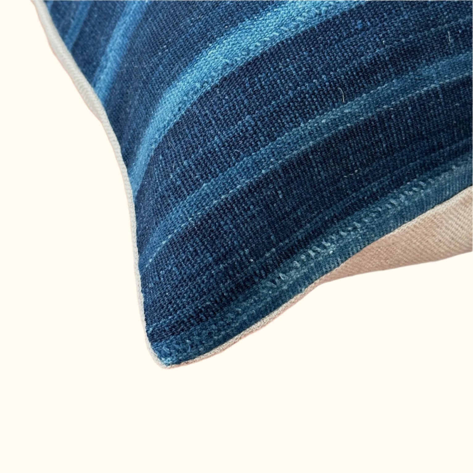 Indigo Woven Stripe Pillow - 16" x 24" - North Africa - 1471b