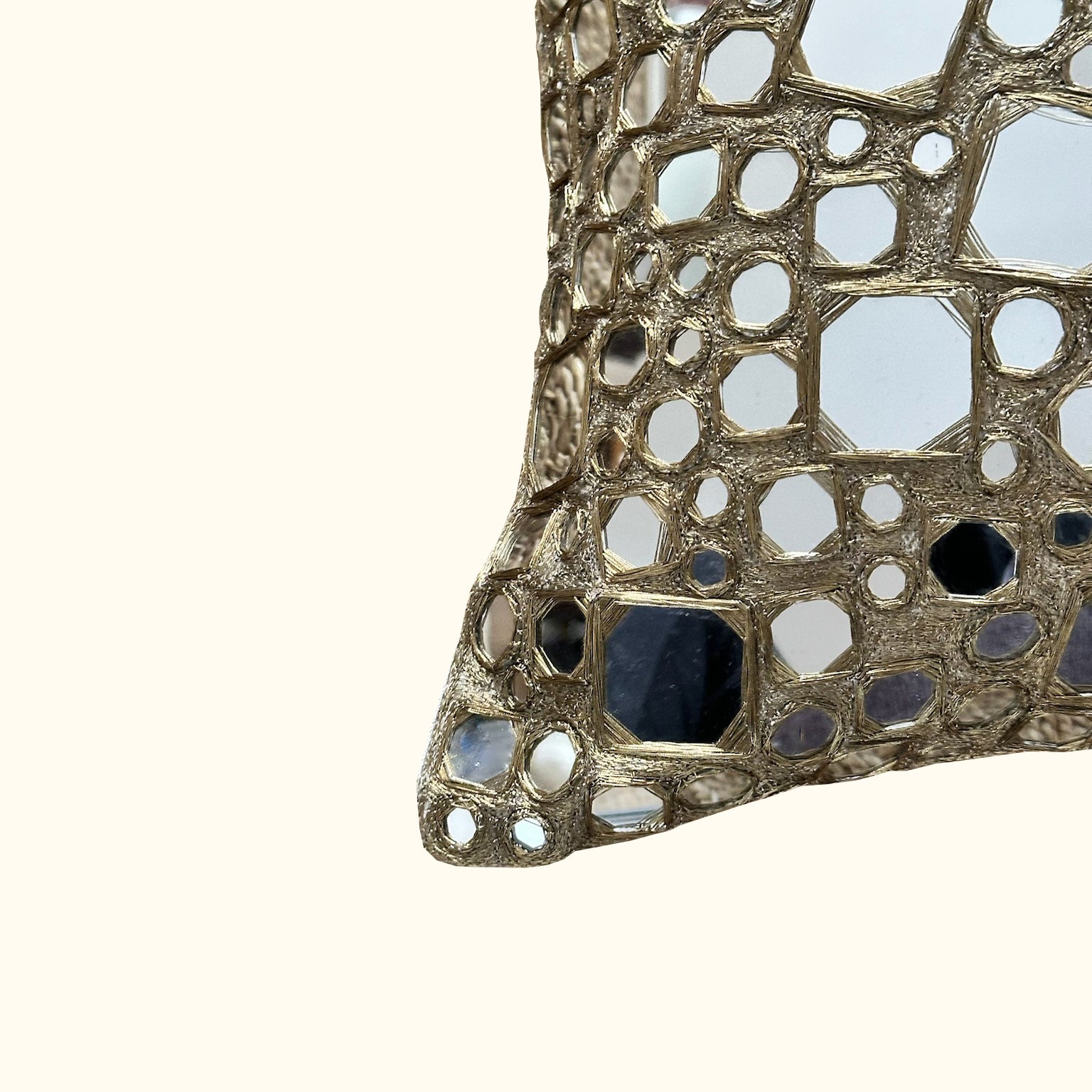 For our Heavy Metal collection, brass charms, rings and coins, bronze zippers and mirror fragments are juxtaposed against natural linen and jute to create sophisticated pillows with a rebel heart.