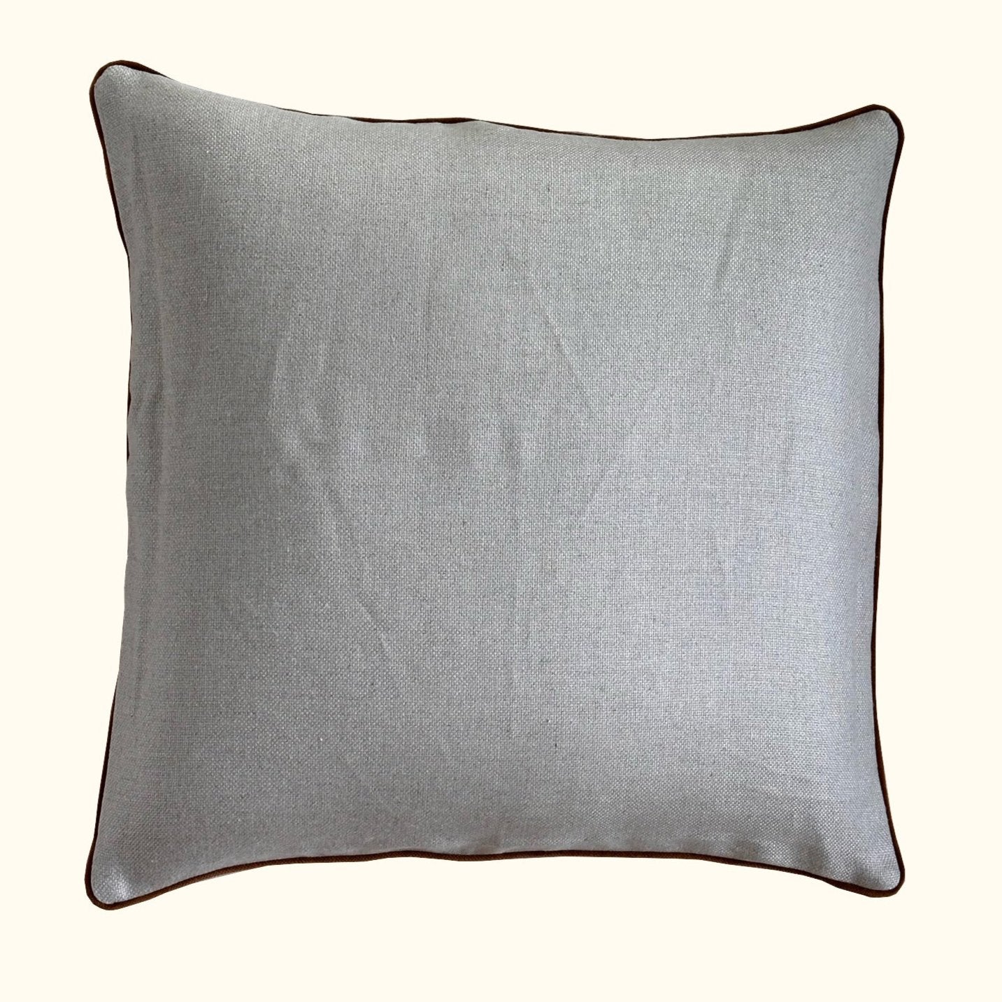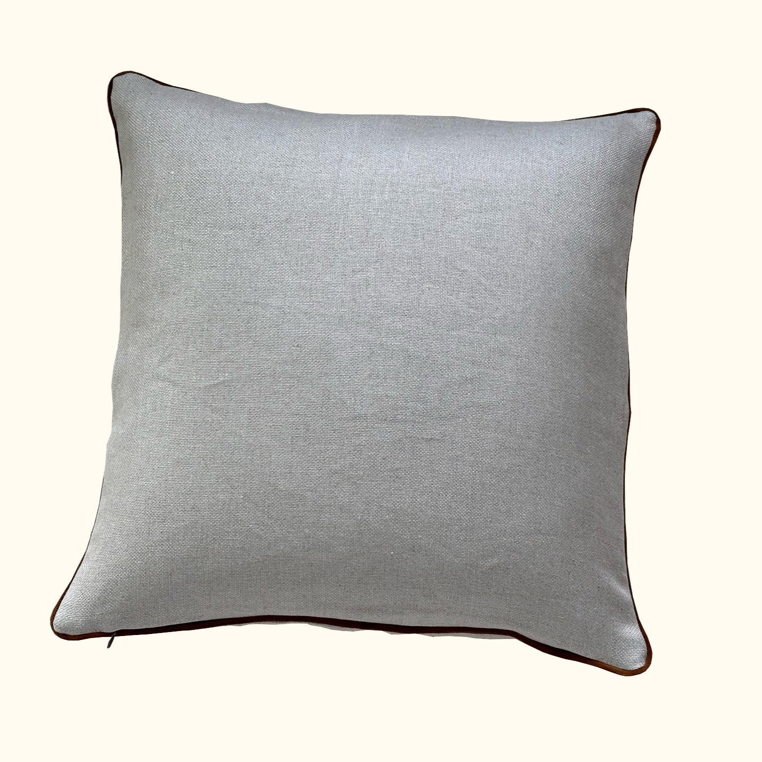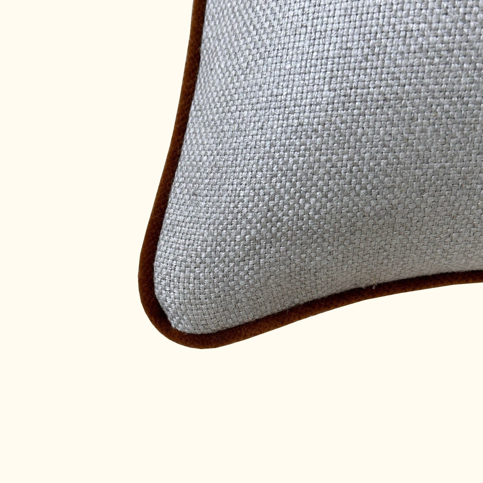 Natural Linen w/ Cognac Velvet Piping Pillow - 22" x 22" - USA
