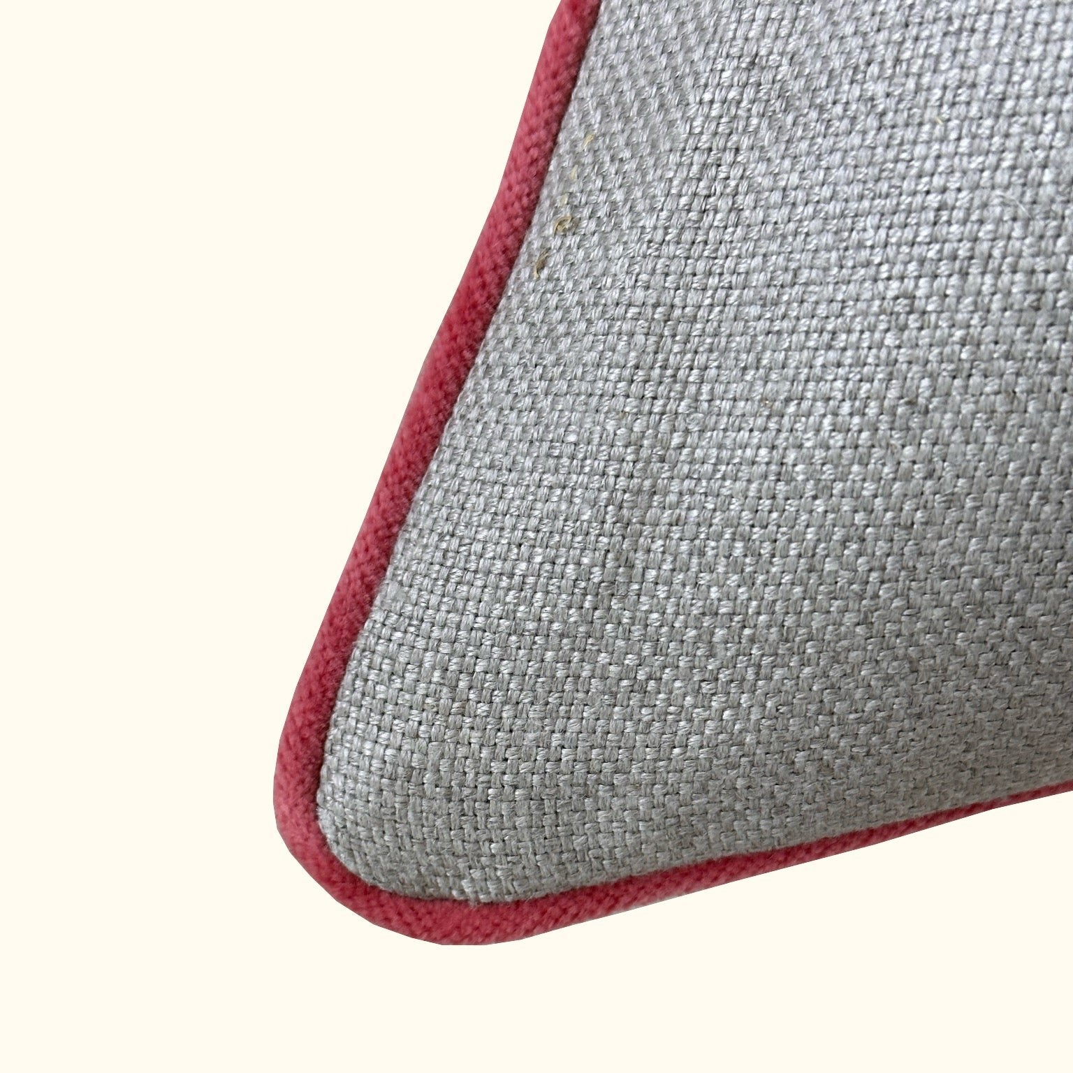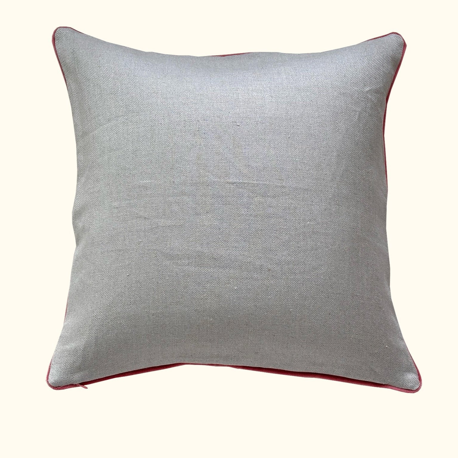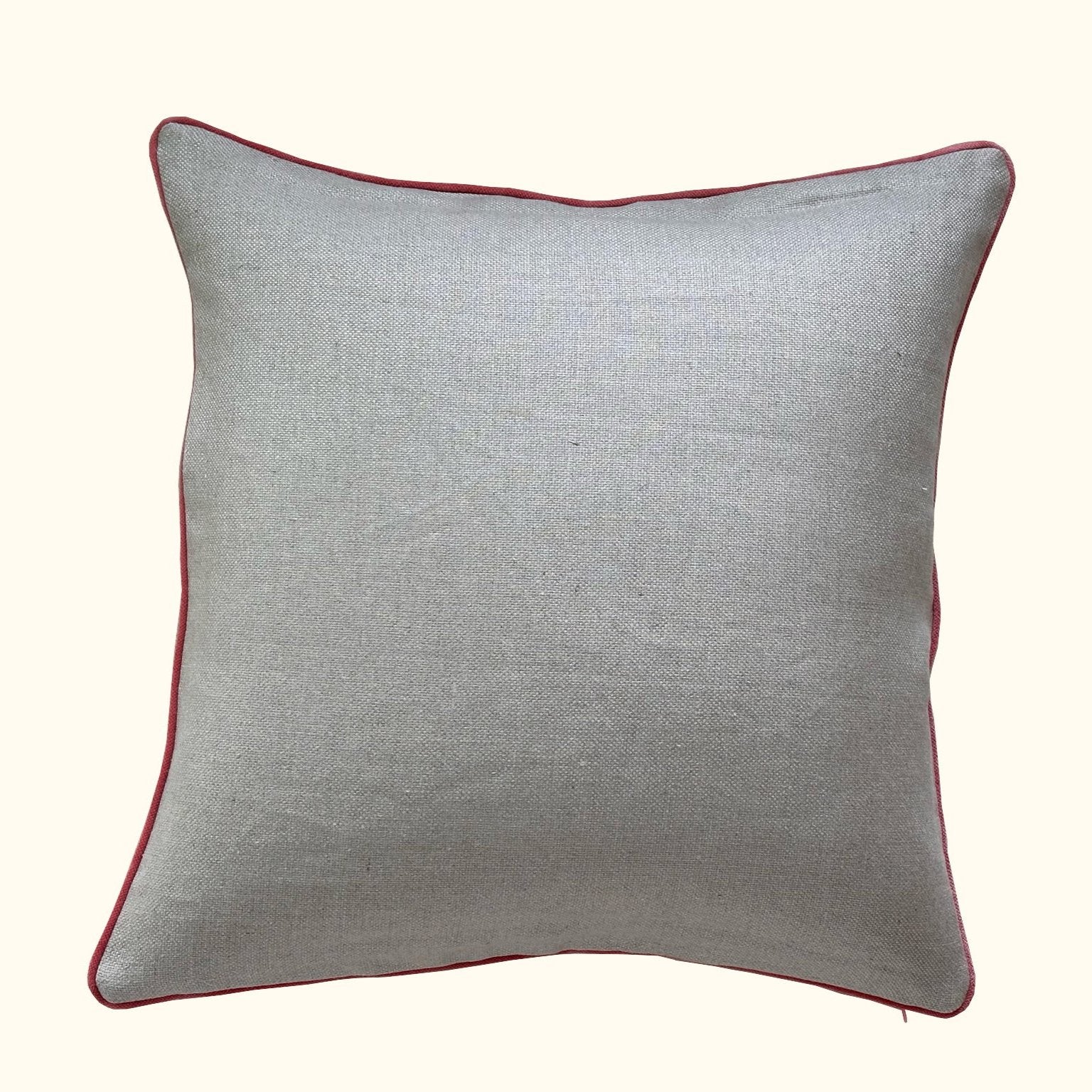 Natural Linen w/ Coral Velvet Piping Pillow - 22" x 22" - USA