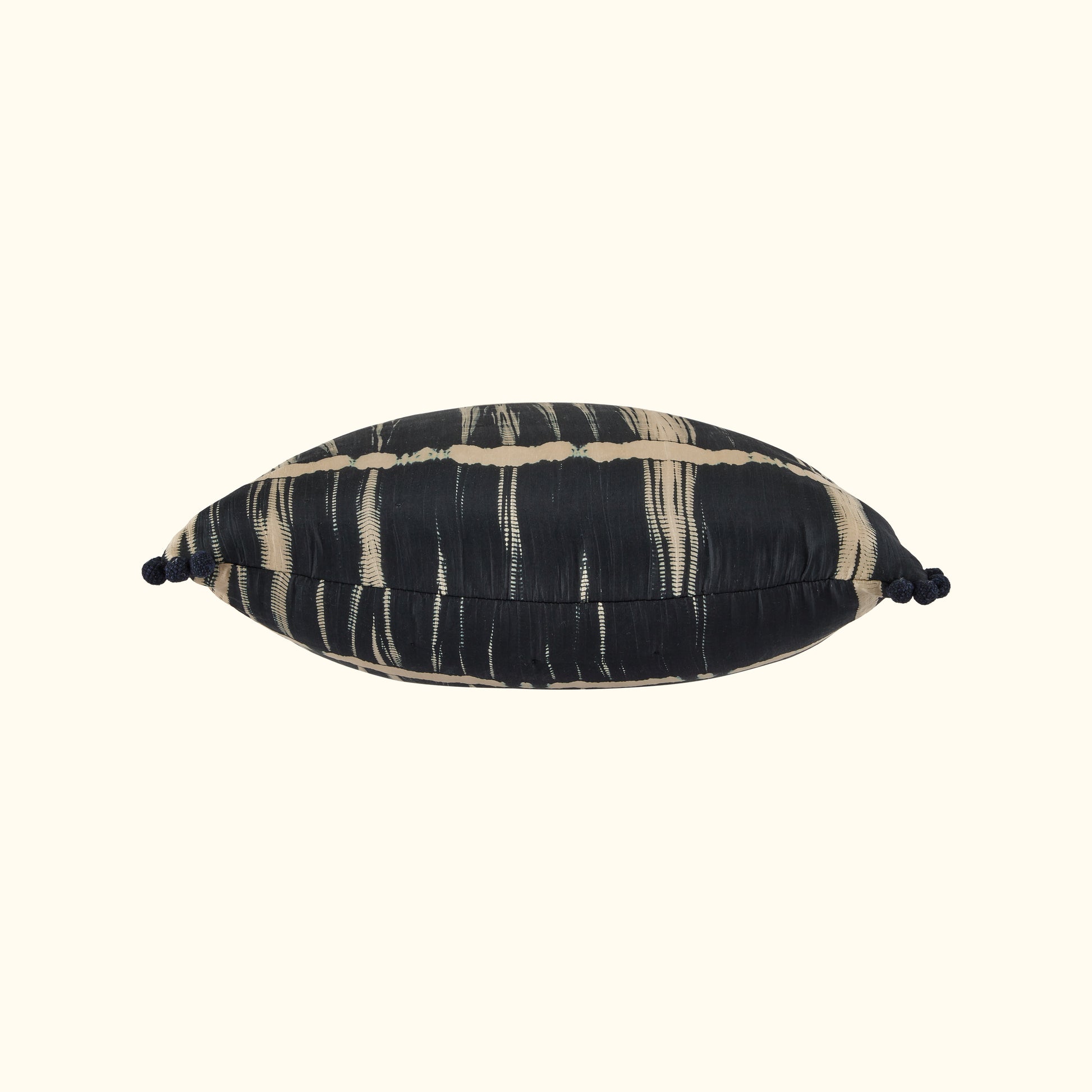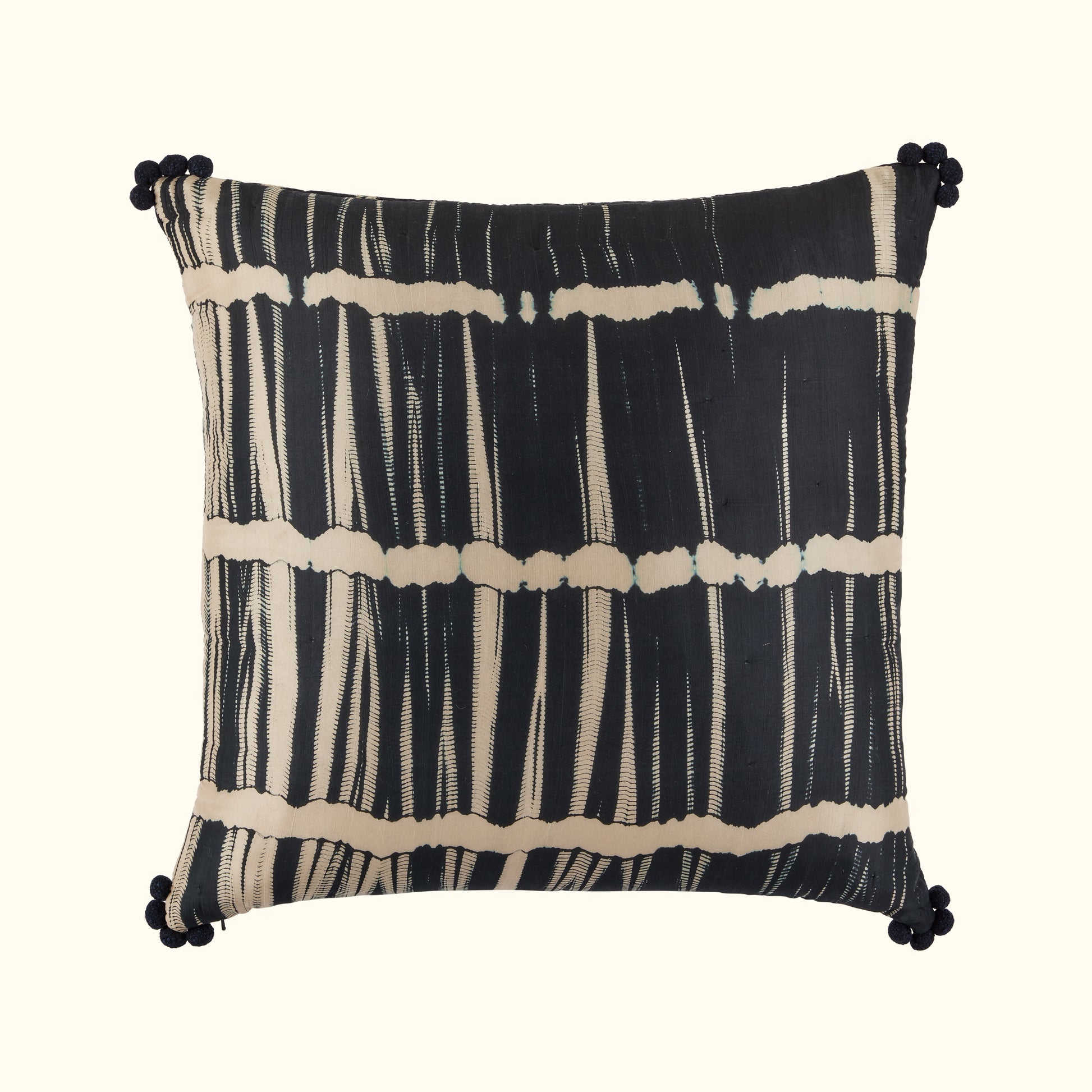 Shibori originated in Asia centuries ago, and was revived in silk by one of Indias most beloved textile designers. Each piece is hand dyed silk on both sides and is embellished with handmade trims and tassels making each pillow a true one-of-a-kind.