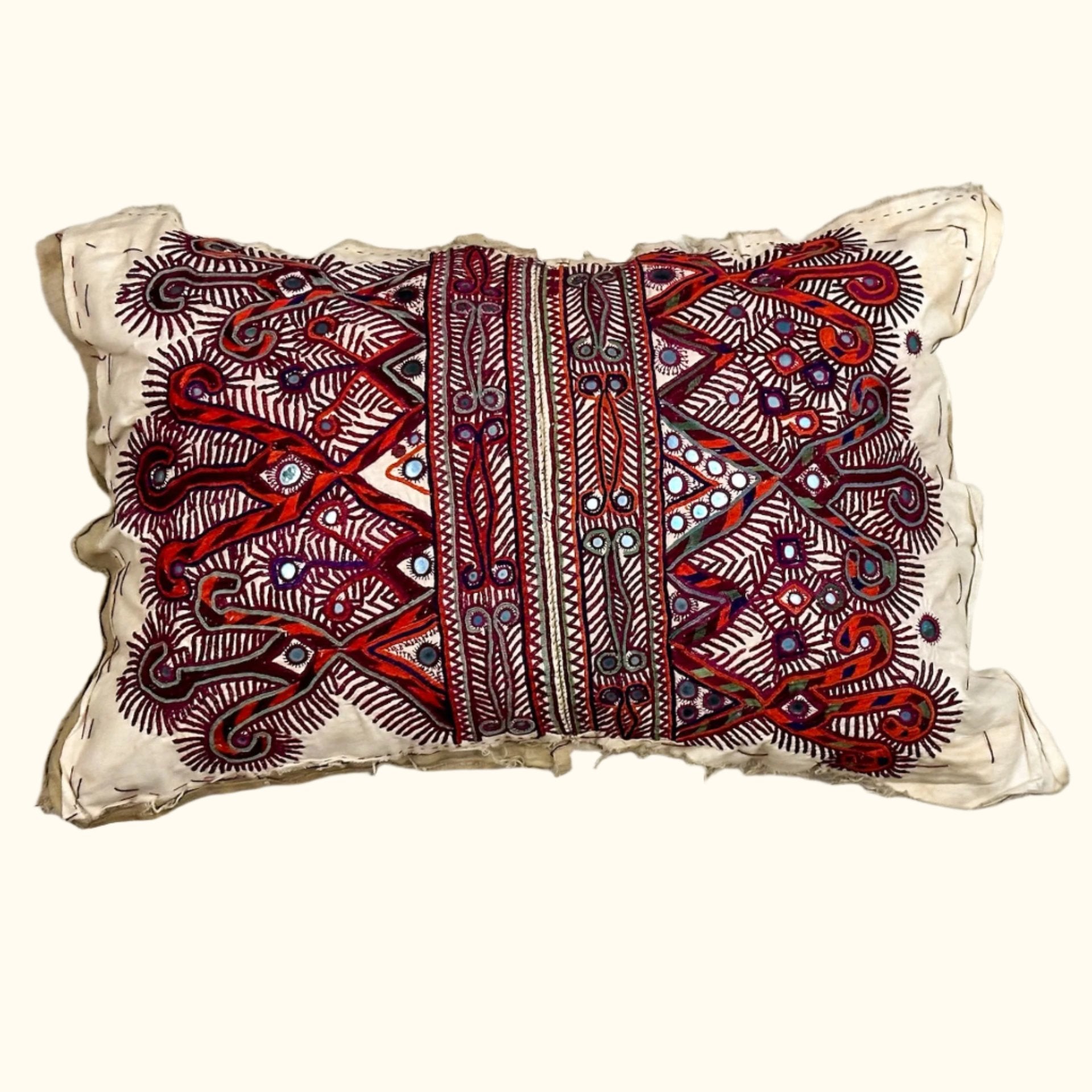 Vintage Embroidered Pillow - 16" x 24" - Afghanistan - 340a