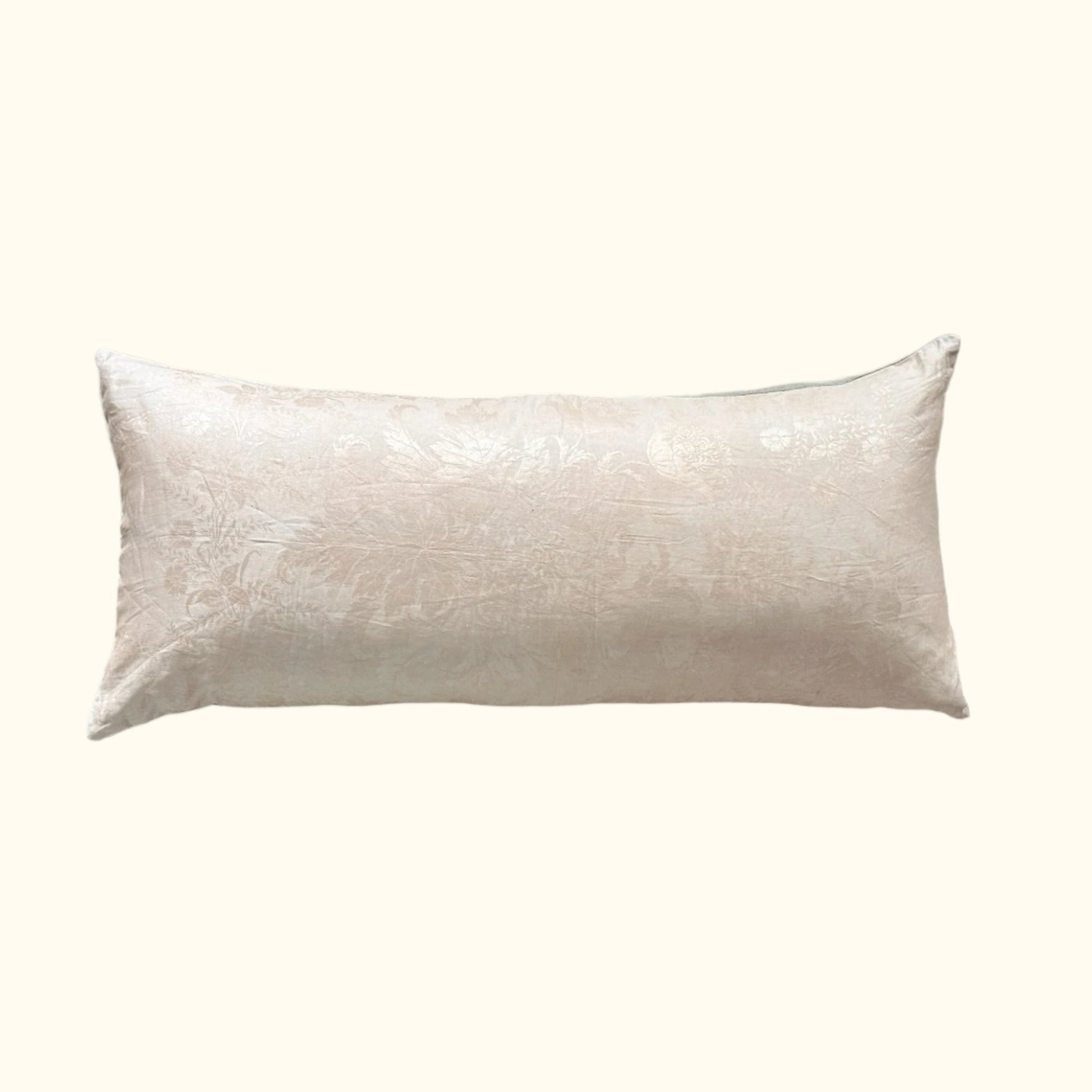 - All pillows are carefully constructed with the finest natural materials. As the fronts are vintage and antique textiles, some imperfections may be present. Great care and attention has been taken to ensure that significant tears or stains have been addressed or avoided. The vintage textiles have been lined, and each pillow is sewn with overlocked inside seams with generous seam allowances and finished with hidden zippers. Back fabrics are either natural linen or cotton velvet.