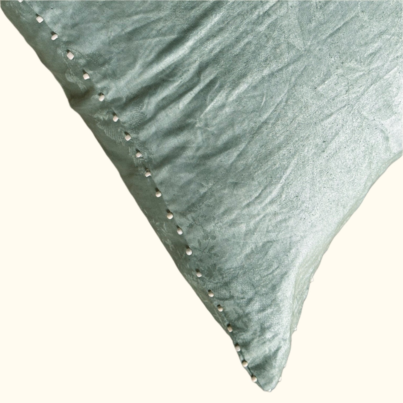 - All pillows are carefully constructed with the finest natural materials. As the fronts are vintage and antique textiles, some imperfections may be present. Great care and attention has been taken to ensure that significant tears or stains have been addressed or avoided. The vintage textiles have been lined, and each pillow is sewn with overlocked inside seams with generous seam allowances and finished with hidden zippers. Back fabrics are either natural linen or cotton velvet.