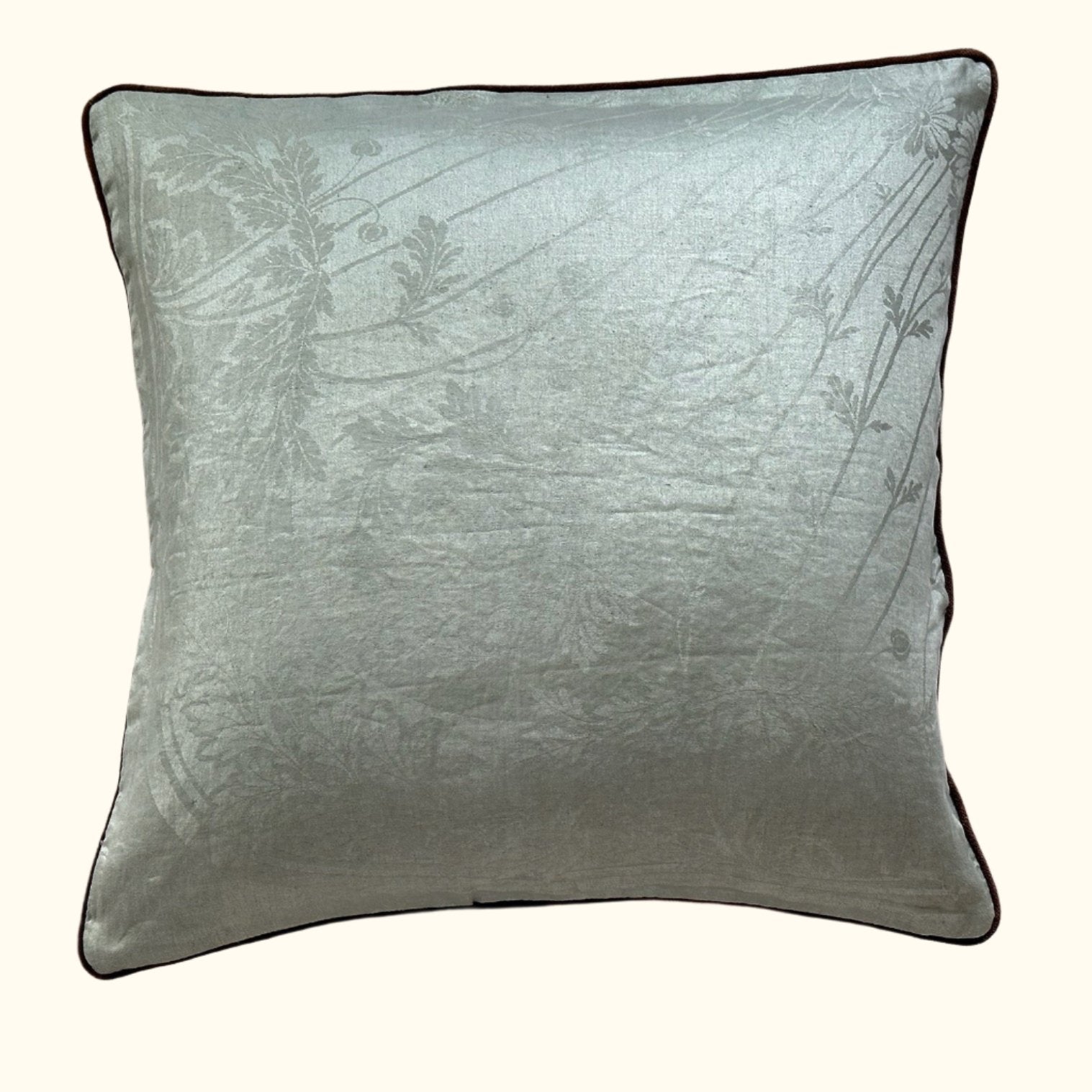 - All pillows are carefully constructed with the finest natural materials. As the fronts are vintage and antique textiles, some imperfections may be present. Great care and attention has been taken to ensure that significant tears or stains have been addressed or avoided. The vintage textiles have been lined, and each pillow is sewn with overlocked inside seams with generous seam allowances and finished with hidden zippers. Back fabrics are either natural linen or cotton velvet.