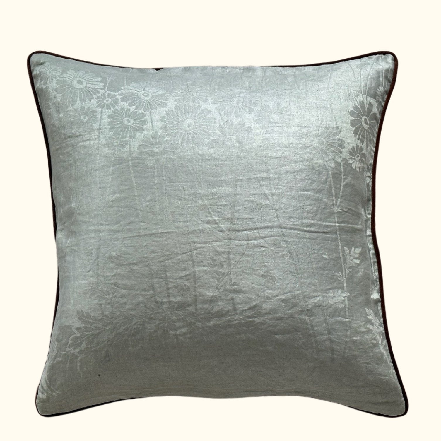 - All pillows are carefully constructed with the finest natural materials. As the fronts are vintage and antique textiles, some imperfections may be present. Great care and attention has been taken to ensure that significant tears or stains have been addressed or avoided. The vintage textiles have been lined, and each pillow is sewn with overlocked inside seams with generous seam allowances and finished with hidden zippers. Back fabrics are either natural linen or cotton velvet.
