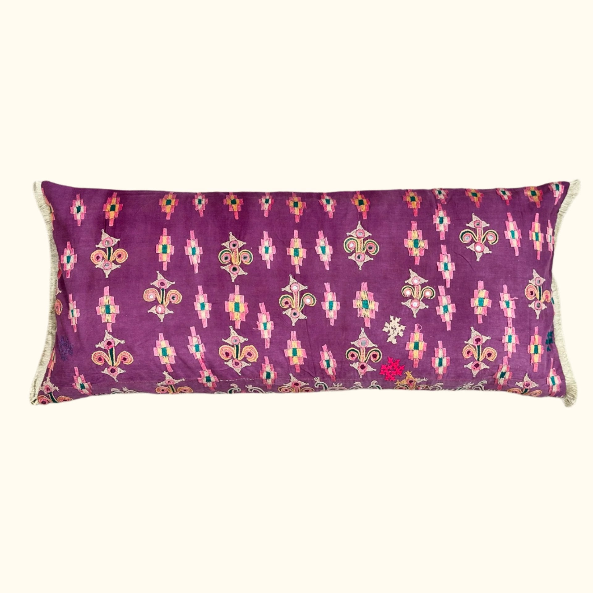 Vintage Banjara Embroidered Pillow - 16" x 36" - India - 318c