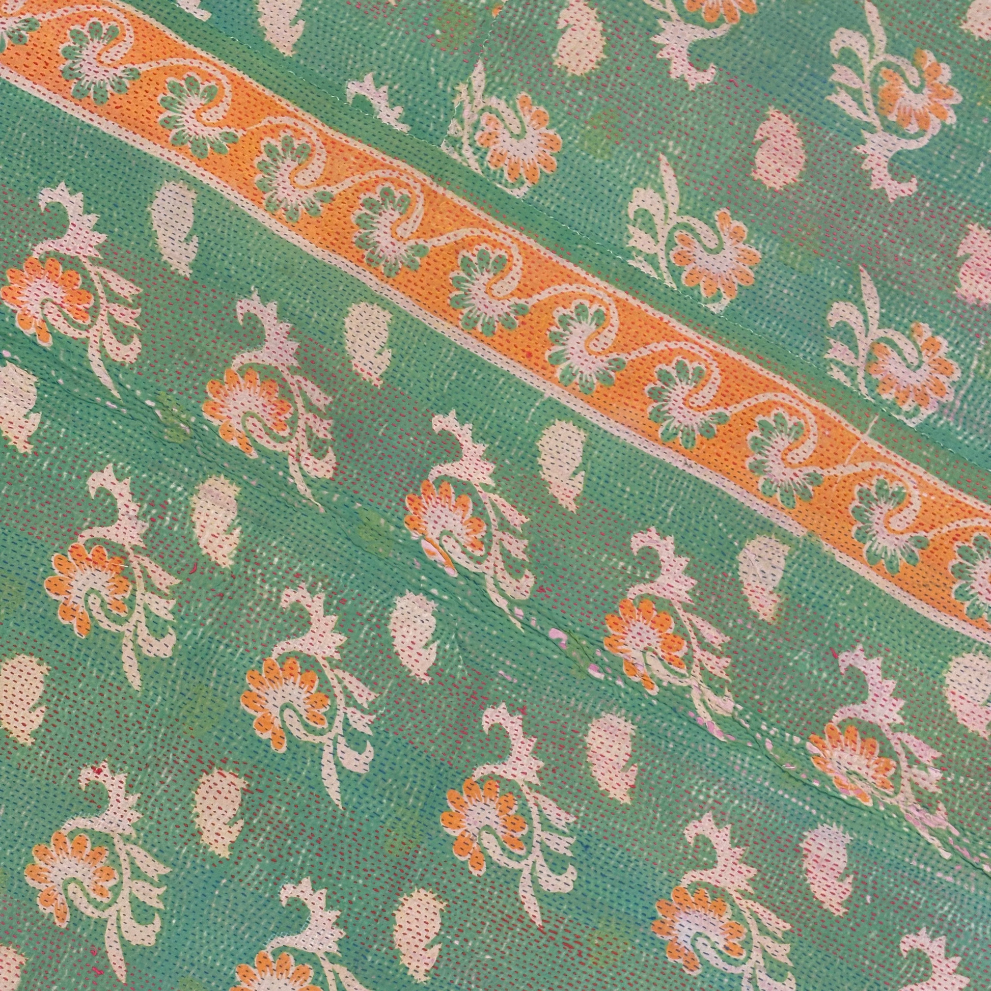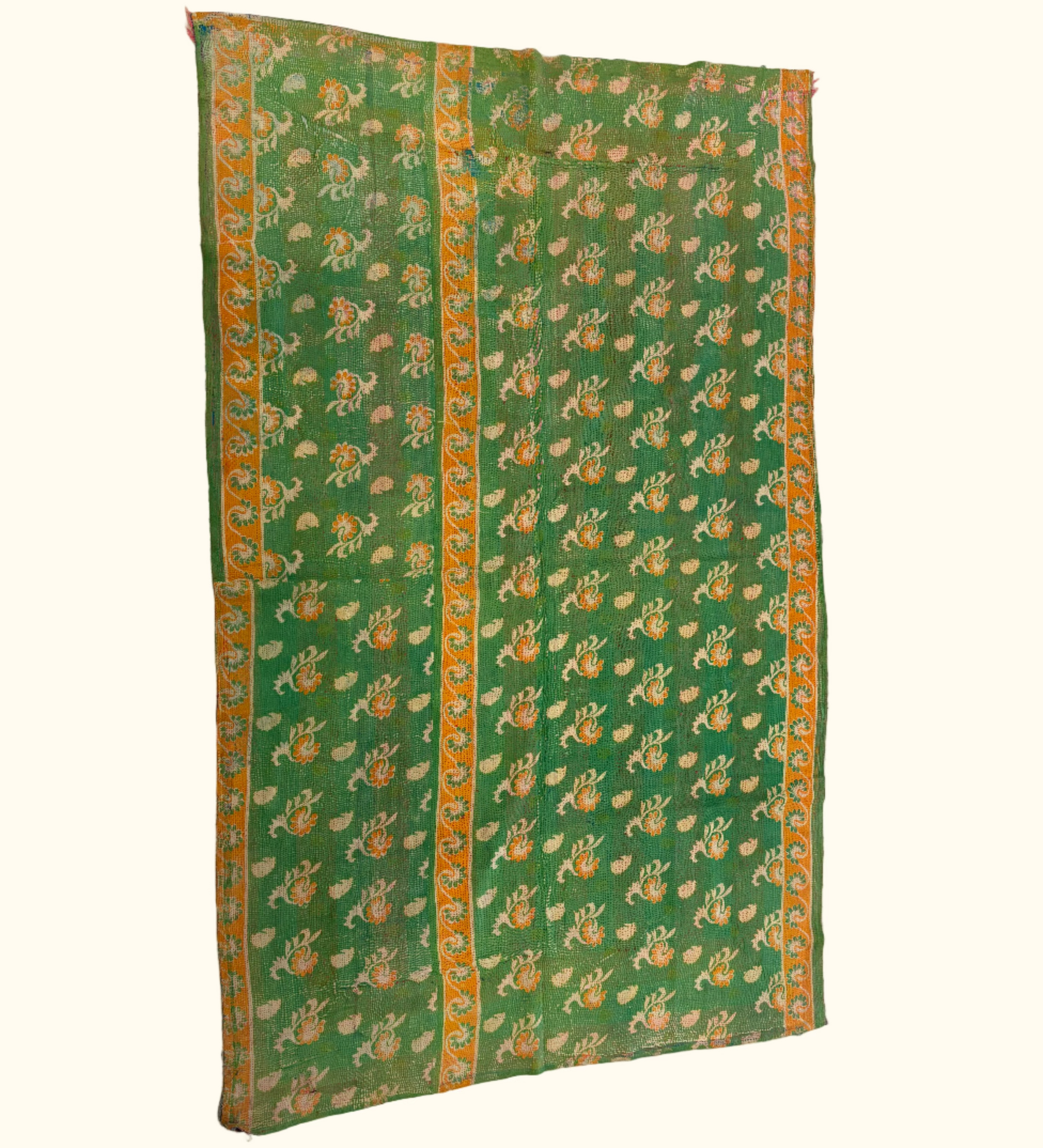 Handcrafted from layers of vintage cotton textiles, this Kantha quilt carries the beauty of time and touch. Each tiny hand-stitched line tells its own quiet story, creating a piece that is soft, soulful, and truly one-of-a-kind. Perfect as a throw, bedcover, or accent piece, it adds warmth and artistry to any space.