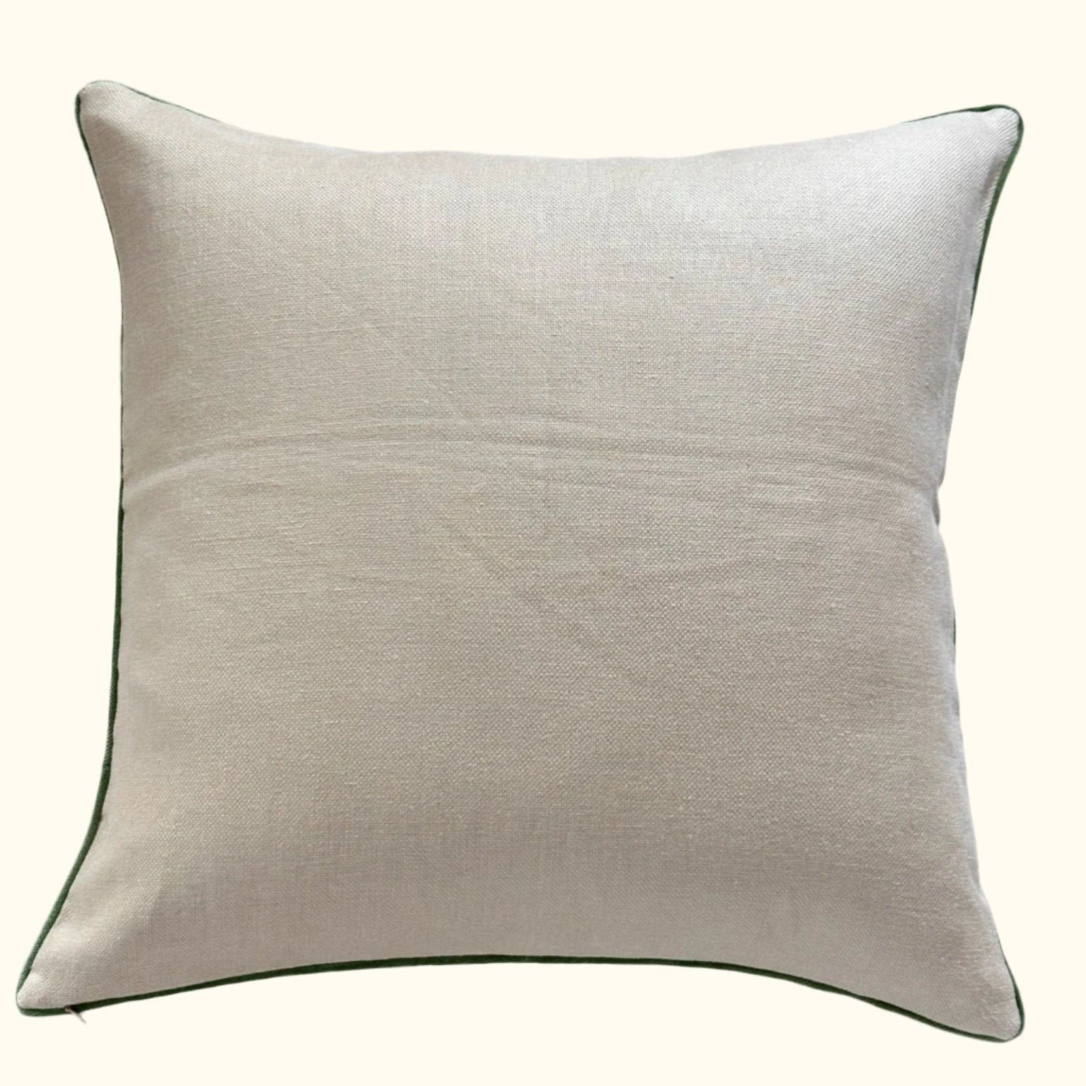 - All pillows are carefully constructed with the finest natural materials. As the fronts are vintage and antique textiles, some imperfections may be present. Great care and attention has been taken to ensure that significant tears or stains have been addressed or avoided. The vintage textiles have been lined, and each pillow is sewn with overlocked inside seams with generous seam allowances and finished with hidden zippers. Back fabrics are either natural linen or cotton velvet.