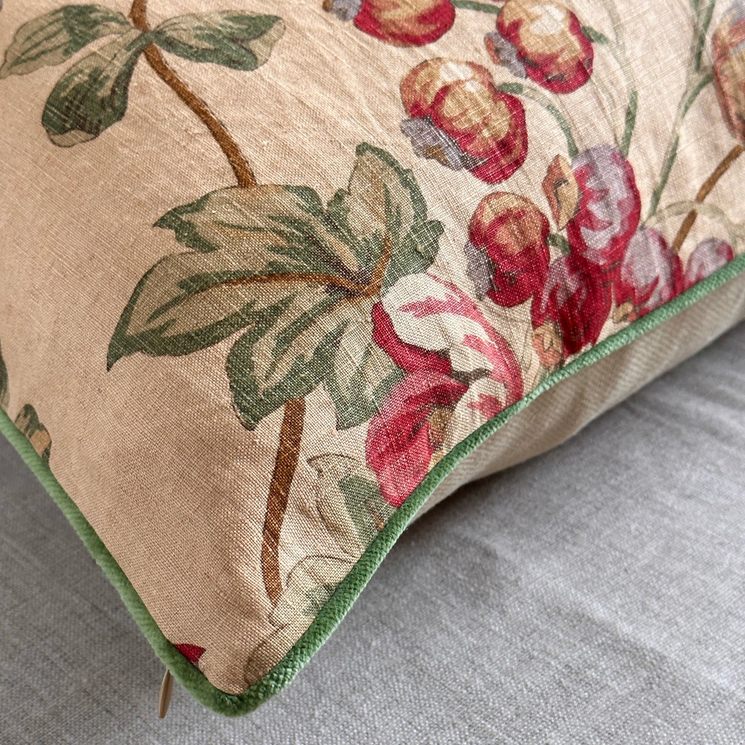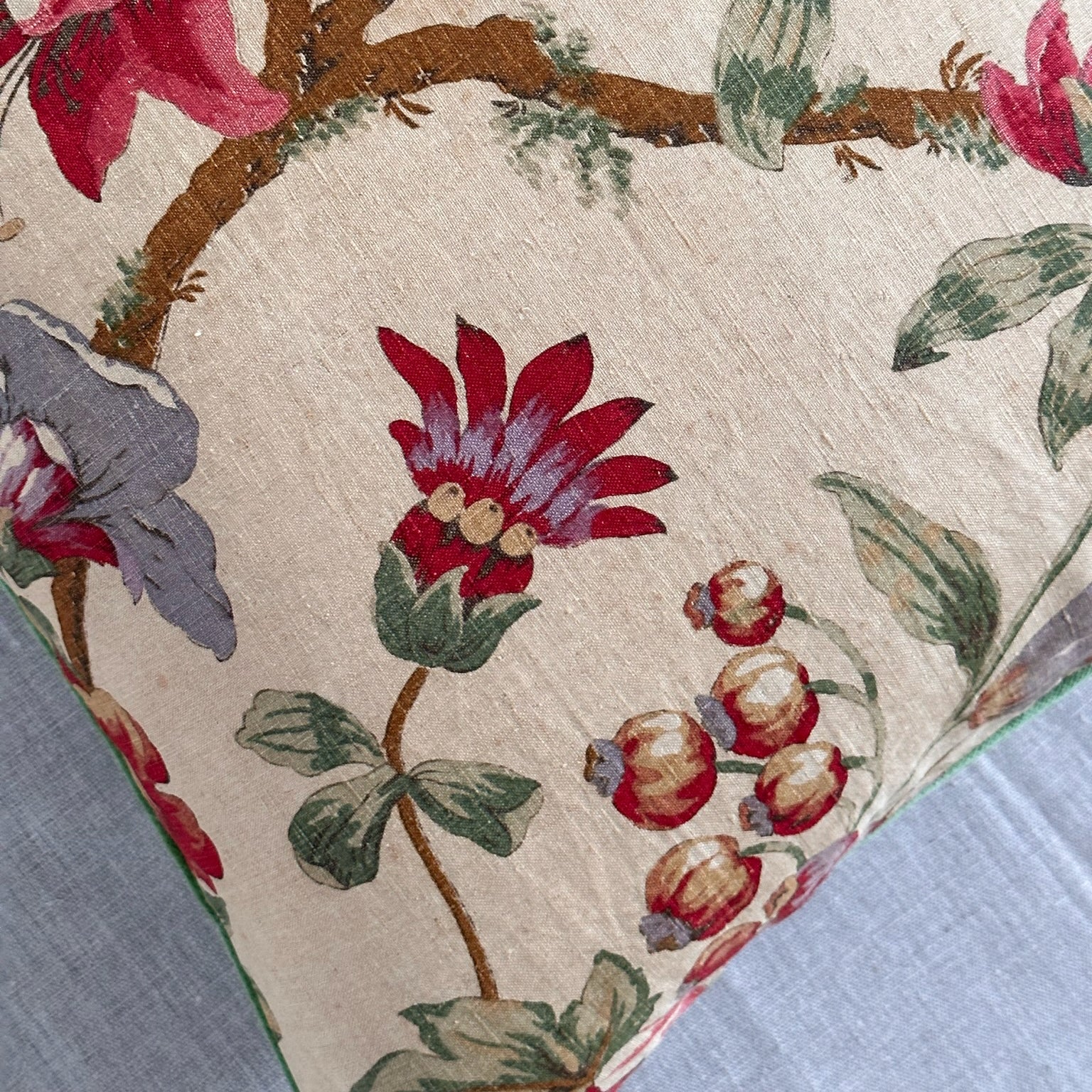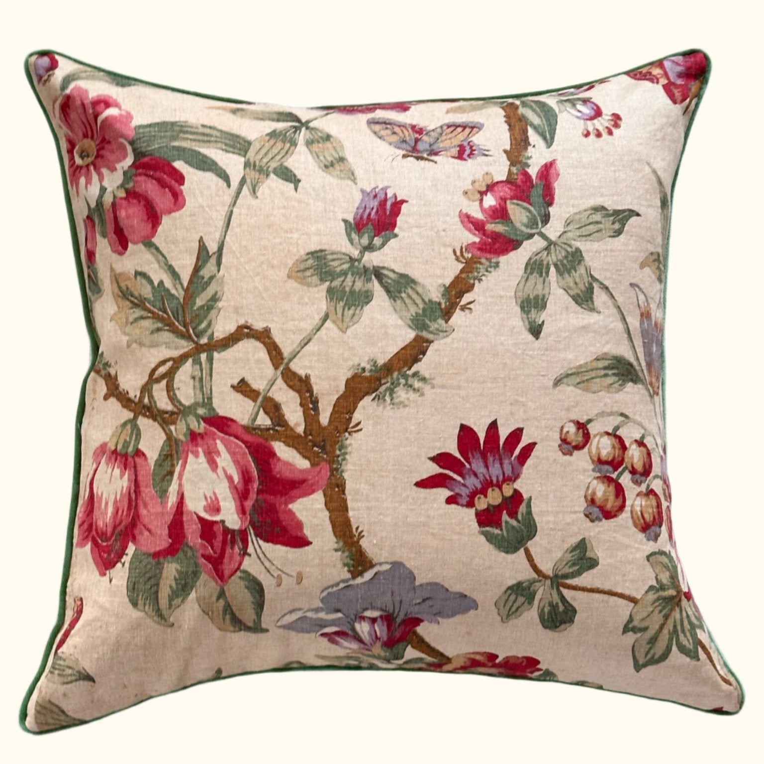 Vintage Linen Floral Pillow - 24x24 - England - 259a