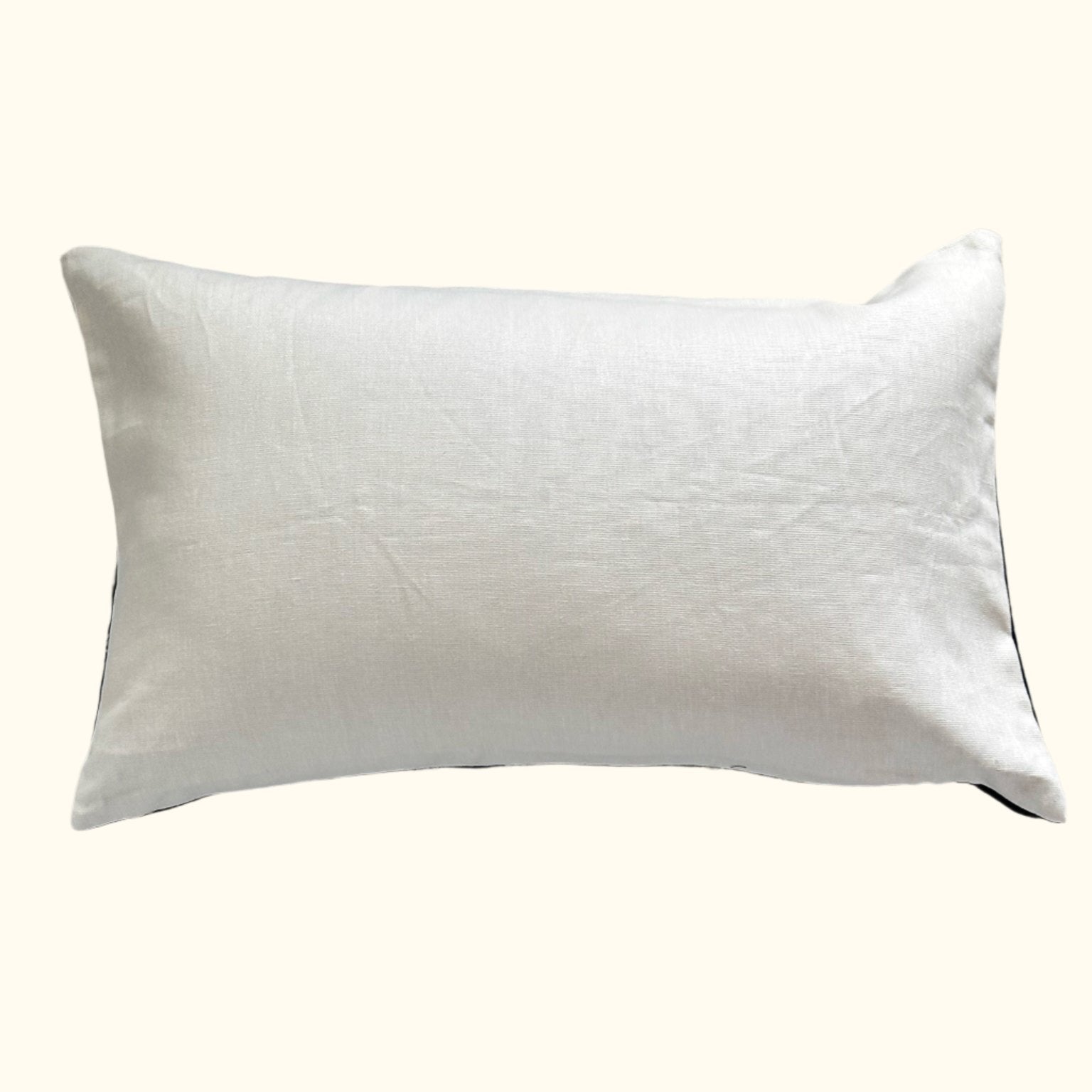 - All pillows are carefully constructed with the finest natural materials. As the fronts are vintage and antique textiles, some imperfections may be present. Great care and attention has been taken to ensure that significant tears or stains have been addressed or avoided. The vintage textiles have been lined, and each pillow is sewn with overlocked inside seams with generous seam allowances and finished with hidden zippers. Back fabrics are either natural linen or cotton velvet.