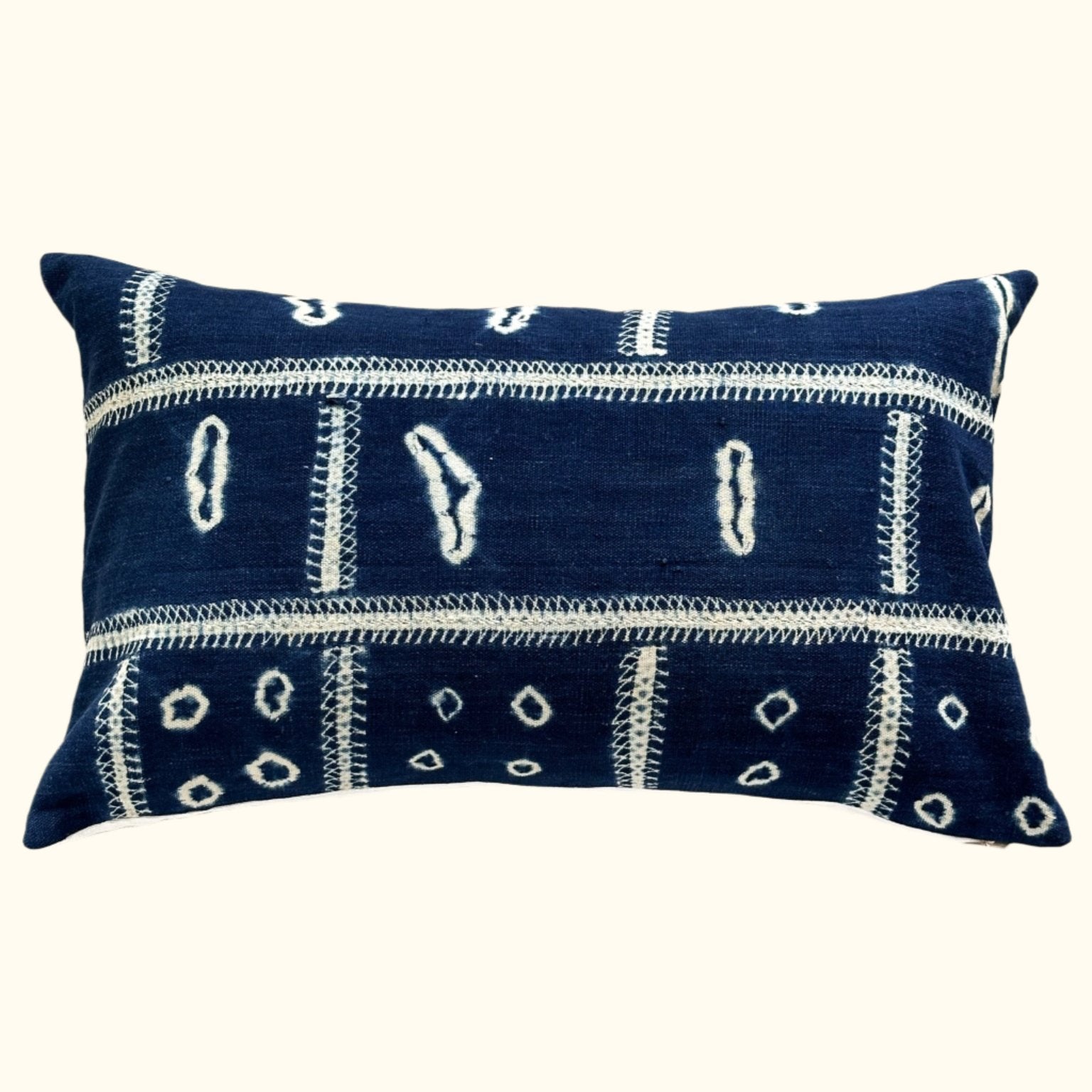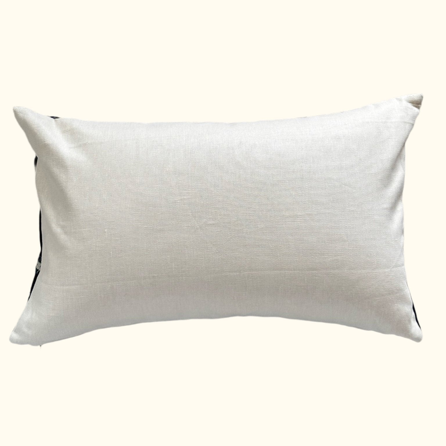 - All pillows are carefully constructed with the finest natural materials. As the fronts are vintage and antique textiles, some imperfections may be present. Great care and attention has been taken to ensure that significant tears or stains have been addressed or avoided. The vintage textiles have been lined, and each pillow is sewn with overlocked inside seams with generous seam allowances and finished with hidden zippers. Back fabrics are either natural linen or cotton velvet.