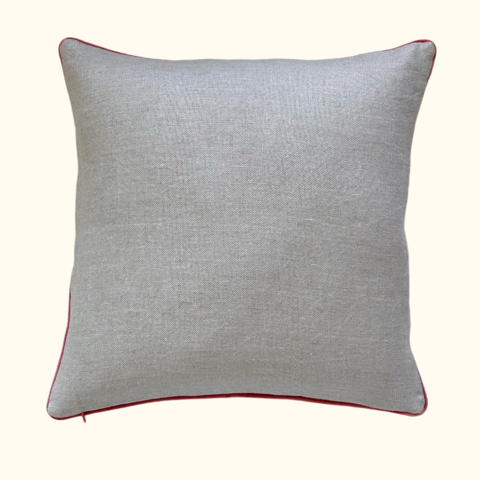 - All pillows are carefully constructed with the finest natural materials. As the fronts are vintage and antique textiles, some imperfections may be present. Great care and attention has been taken to ensure that significant tears or stains have been addressed or avoided. The vintage textiles have been lined, and each pillow is sewn with overlocked inside seams with generous seam allowances and finished with hidden zippers. Back fabrics are either natural linen or cotton velvet.
